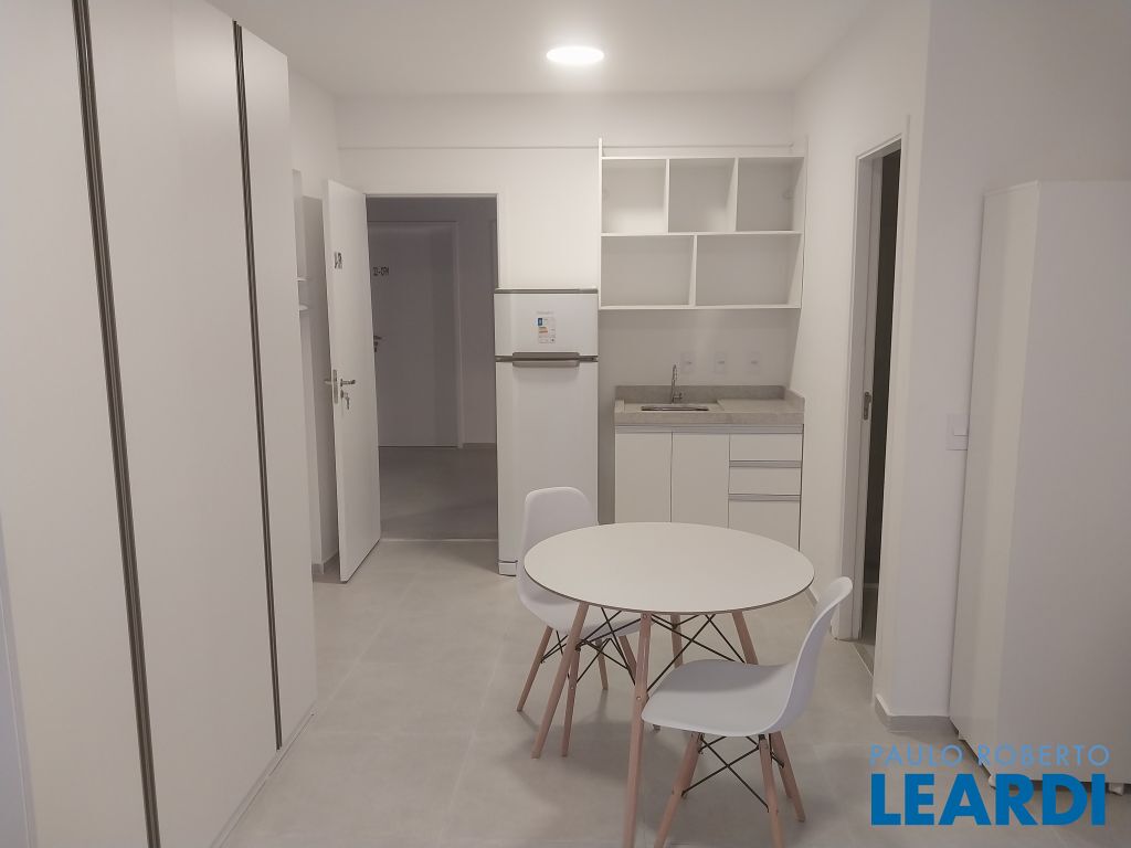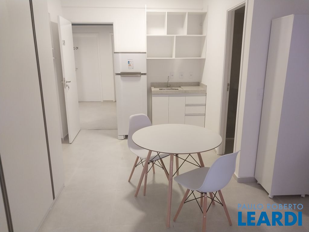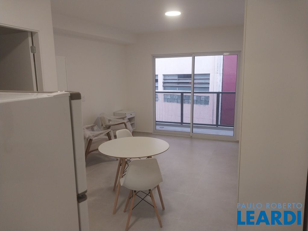 Aluguel de Studio Mobiliado próximo da Avenida Paulista com 32 m², equipado com: cama de casal, armários, fogão, geladeira, mesa de jantar, varanda aberta com tanque.2604