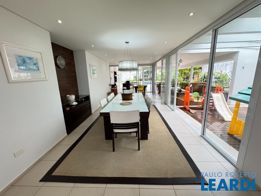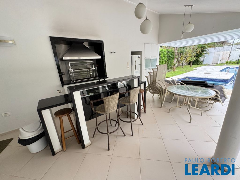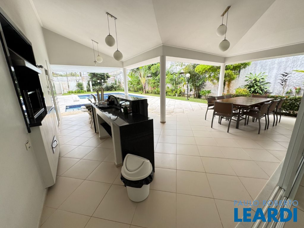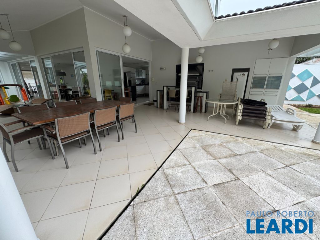 LINDA CASA AVARANDADA, LAVABO, SALA DE ESTAR COM LAREIRA, SALA DE JANTAR, SALA DE TV, ESCRITÓRIO, 6 SUÍTES COM SACADA, ARMÁRIOS, CLOSET, HIDROMASSAGEM, AR CONDICIONADO, ÁREA DE SERVIÇO, EDÍCULA COM CASA COMPLETA DE CASEIRO, GARAGEM PARA 4 CARROS, JARDIM, PLAYGROUND, ESPAÇO GOURMET COM CHURRASQUEIRA, PISCINA, AQUECIMENTO SOLAR3011