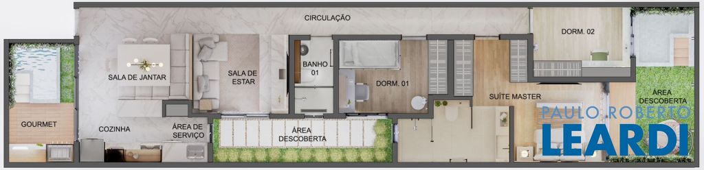 - acabamento completo: teto rebaixado de drywall, piso porcelanato, bancadas de pia nos banheiros e na área gourmet.