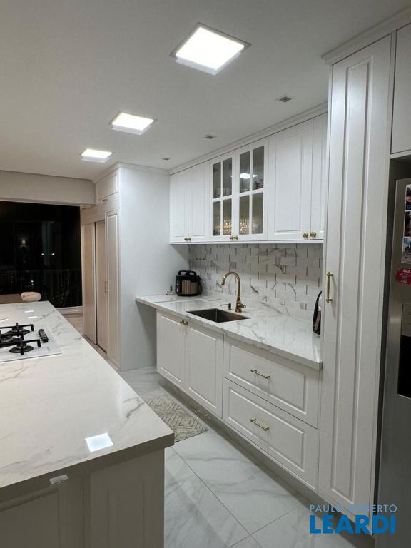 Cozinha equipada com eletrodomésticos e armários planejados
