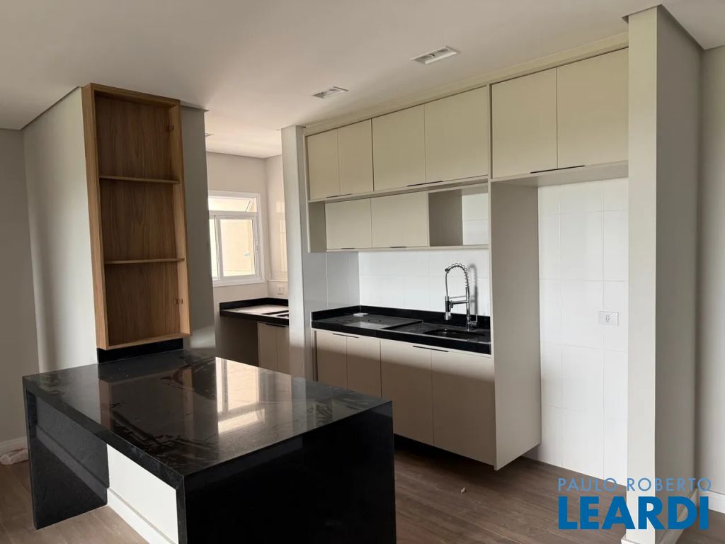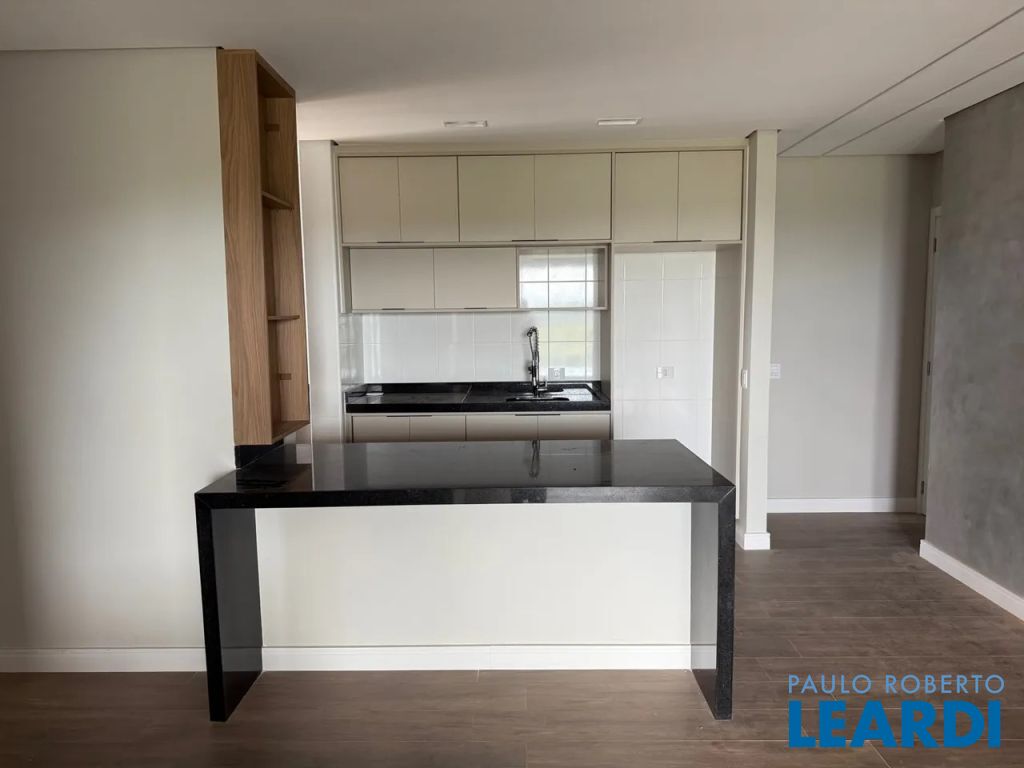 Cozinha americana com armários planejados.