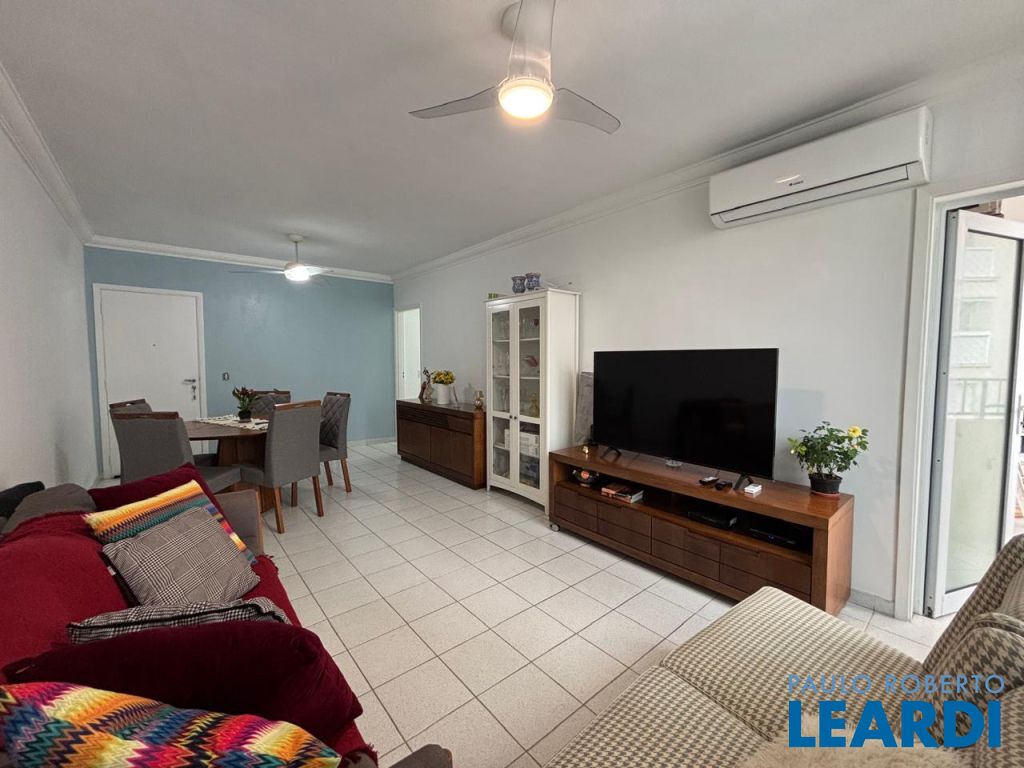 LINDO APTO 100 MTS DO MAR, NO CENTRO DE GUARUJÁ, SACADA GRANDE, 2 DORMS, 1 SUÍTE, ARMÁRIOS, AR CONDICIONADO SALA E QUARTOS, ÁREA DE SERVIÇO, DEPENDÊNCIA DE EMPREGADA, 1 VAGA, BRINQUEDOTECA, PORTARIA 24 HORAS E SERVIÇO DE PRAIA3011