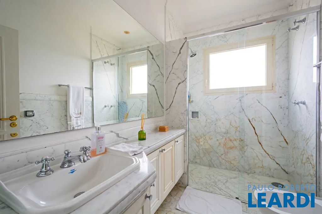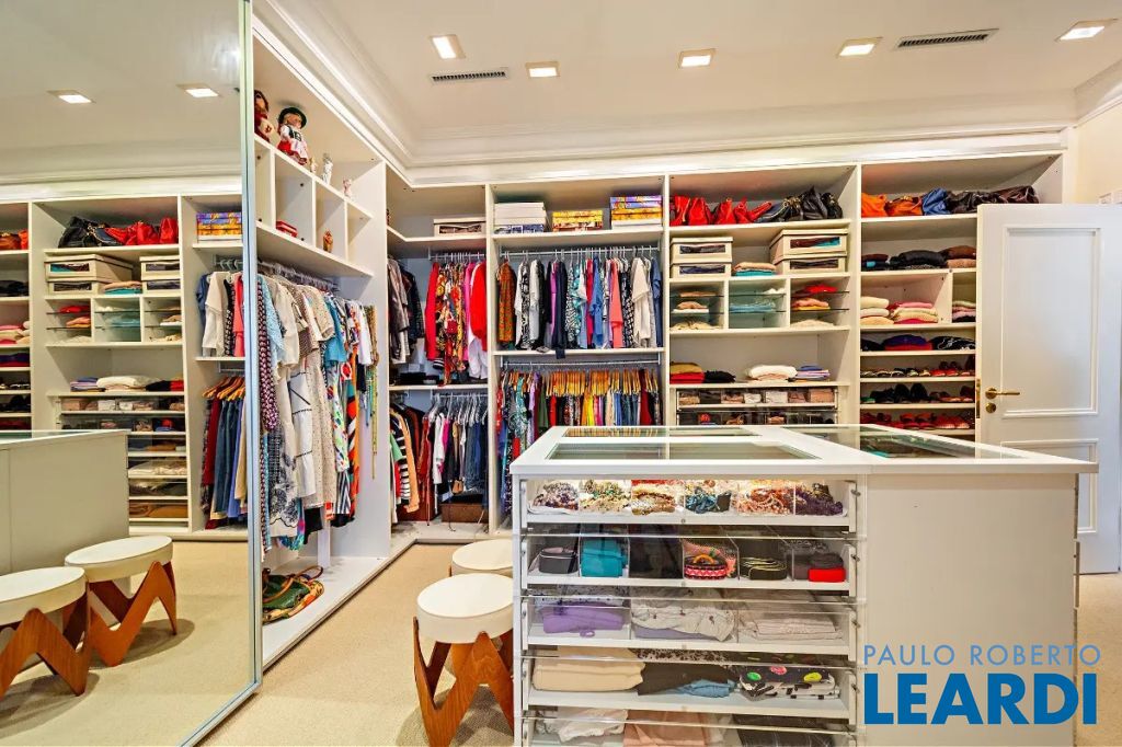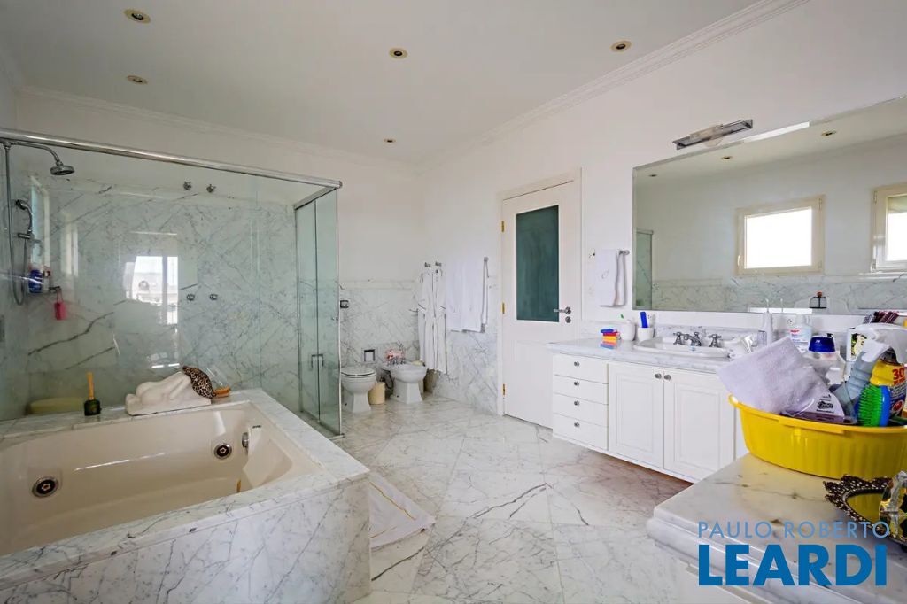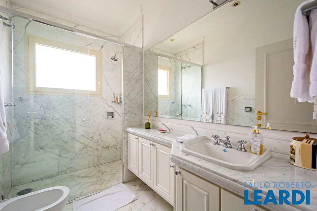 Quatro suítes espaçosas, sendo uma master com amplo closet e banheira de hidromassagem. Dependência completa para funcionários e seis vagas de garagem.