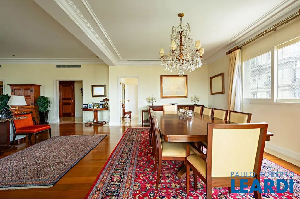 Apartamento de luxo à venda em prédio cobiçado, 539m², andar alto, 4 suítes, 6 vagas, lazer e excelente padrão de segurança a poucos passos do Parque Ibirapuera.