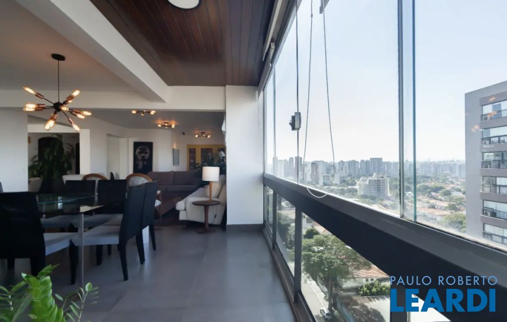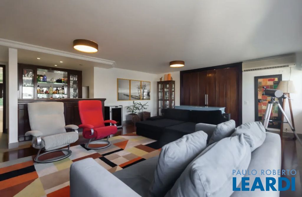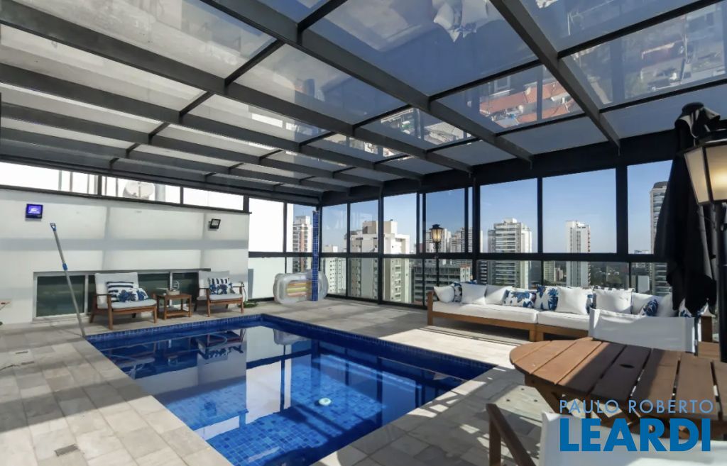 Encante-se com esta espaçosa cobertura no Campo Belo, um imóvel exclusivo com hall privativo que garante total privacidade. Com ambientes bem planejados, é ideal para quem busca conforto, praticidade e lazer privativo. No piso inferior, conta com um living amplo integrado à cozinha americana, perfeito para receber amigos e familiares, além de um espaço dedicado para escritório e três suítes bem distribuídas. As salas possuem pisos em tábua de madeira e os dormitórios em tacos. Toda a parte hidráulica e elétrica foi reformada, e a área de serviço dispõe de dormitório e banheiro para funcionária. No piso superior, há uma sala multifuncional usada como sala de TV com ar-condicionado e uma sala com lareira, além de uma generosa área gourmet integrada à piscina privativa. O imóvel conta ainda com um spa com hidromassagem com cromoterapia e sauna, proporcionando momentos de relaxamento no conforto do lar. A cobertura oferece quatro vagas fixas de garagem e um depósito privativo no subsolo. O condomínio dispõe de academia, salão de festas, playground, piscina e espaço com churrasqueira. Essa é a oportunidade perfeita para quem deseja viver com estilo em uma das melhores localizações de São Paulo.1301