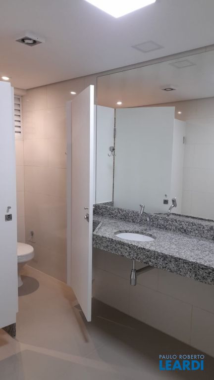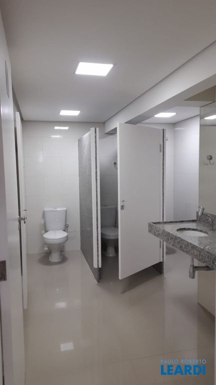 Mezanino com banheiros masculino e feminino e cadeirante .