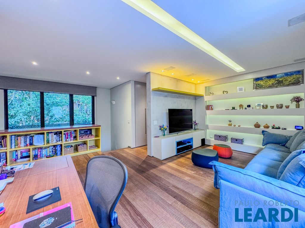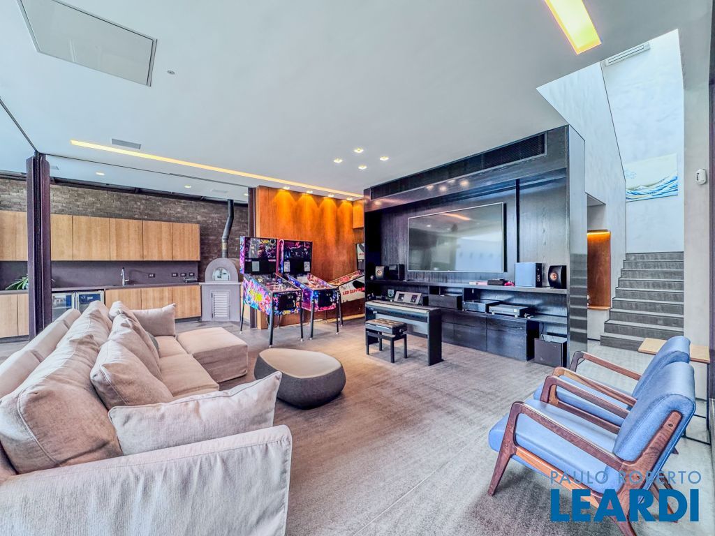 A área social impressiona: 4 salas independentes (estar, jantar, TV e jogos/música) que permitem receber amigos com estilo ou desfrutar de momentos de puro relaxamento. O escritório completo garante praticidade para o dia a dia.