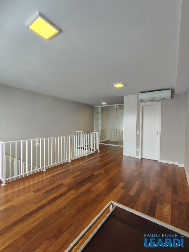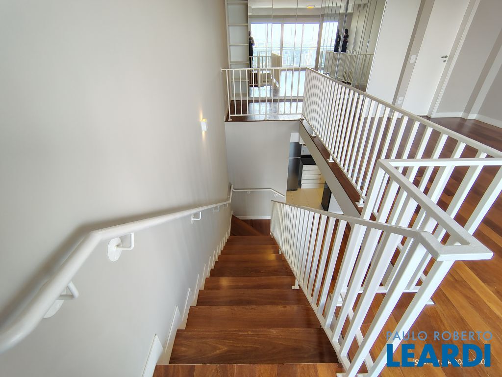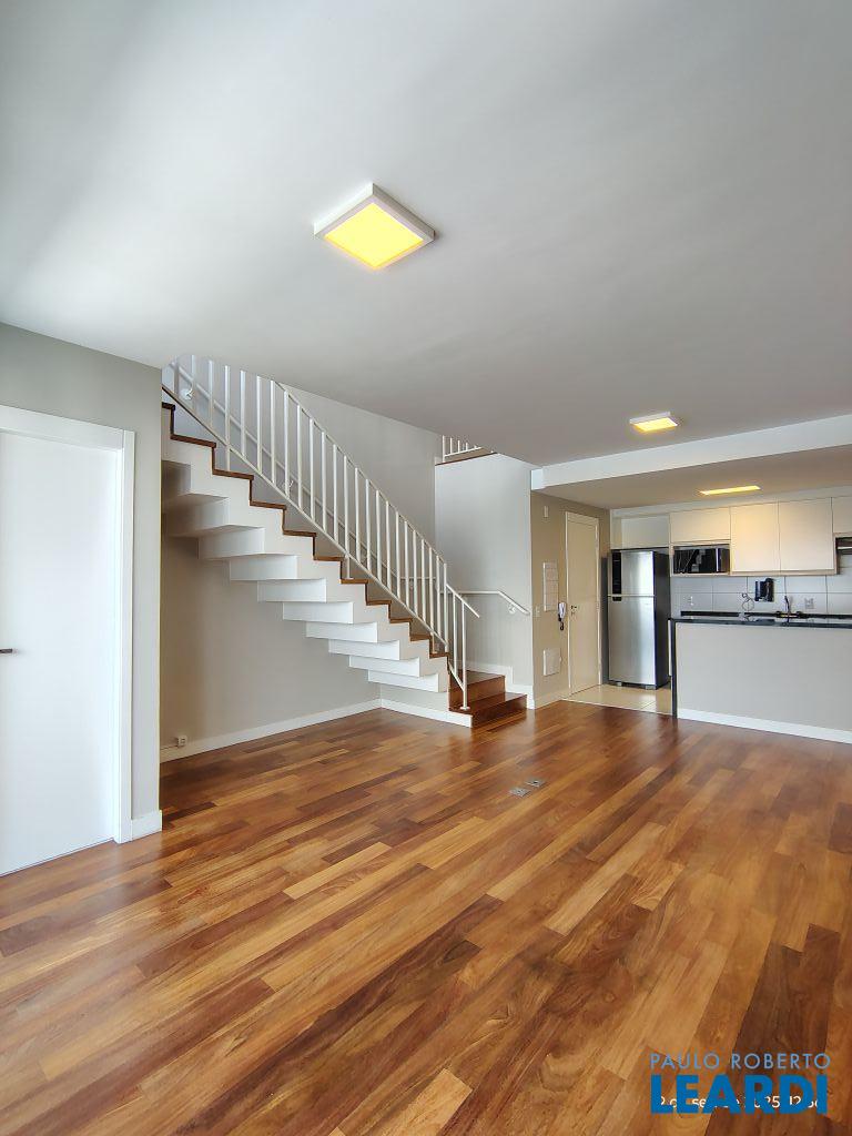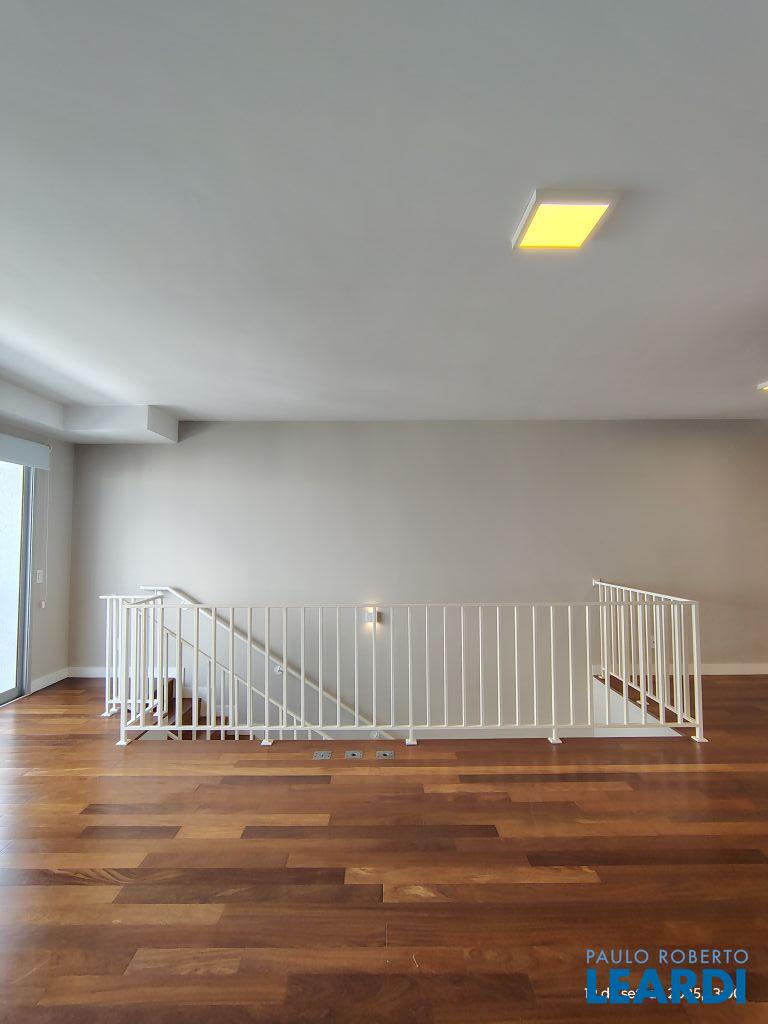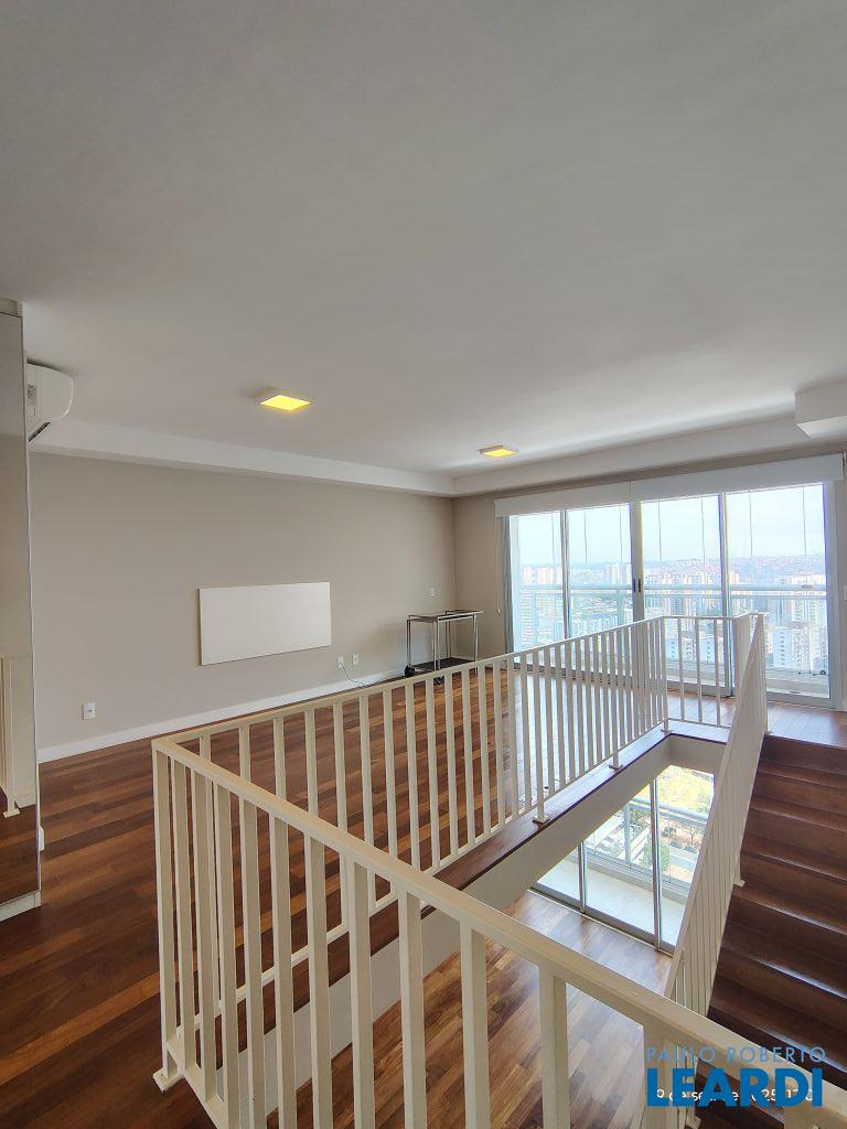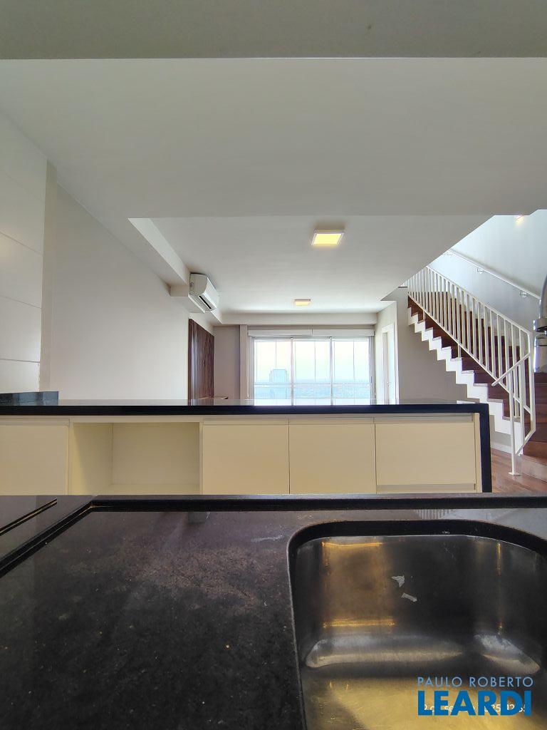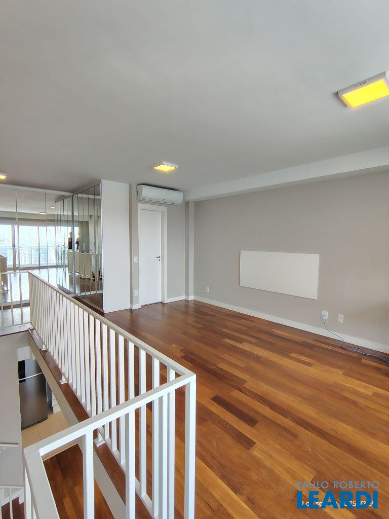 Studio Duplex Mobiliado com Ar-condicionado, 1 suíte + Lavabo, Varanda fechada com vidro, Cozinha americana com Geladeira, Micro ondas, Cooktop e Forno, área de serviço e 2 vagas de garagem. Vista livre permanente.