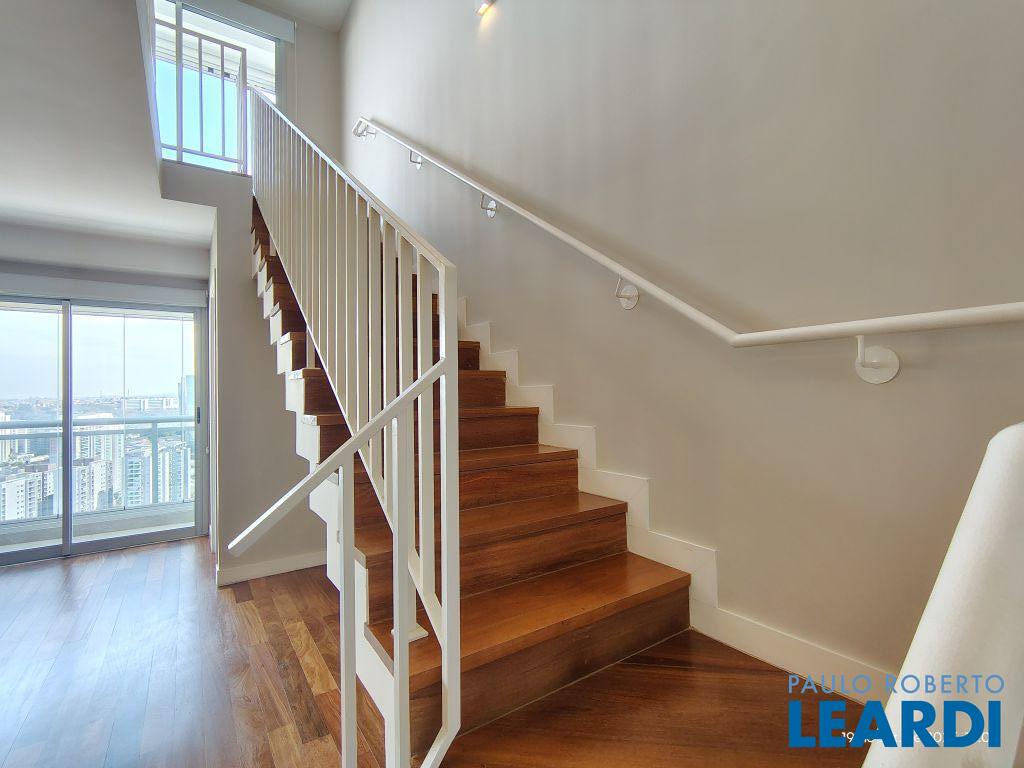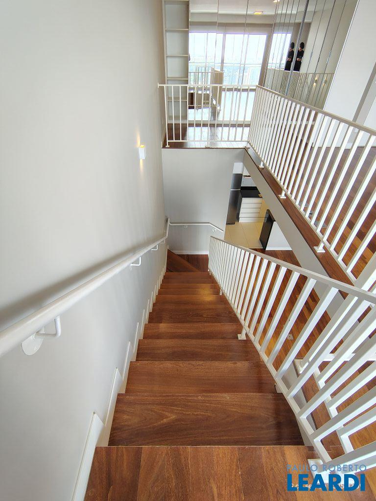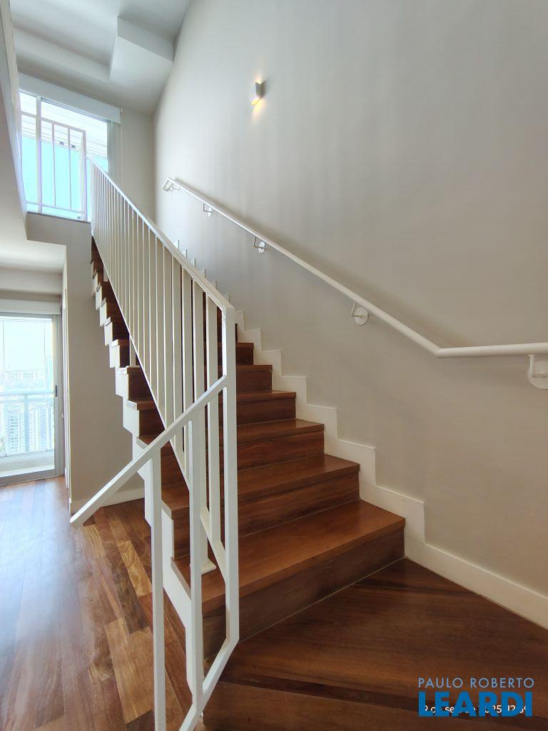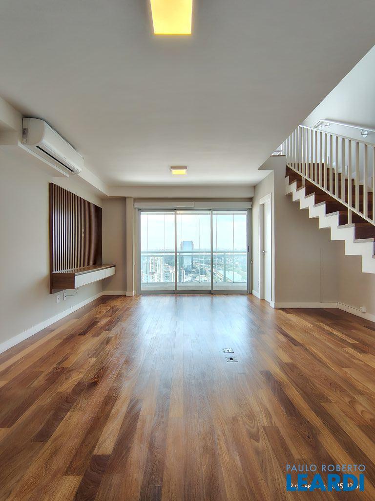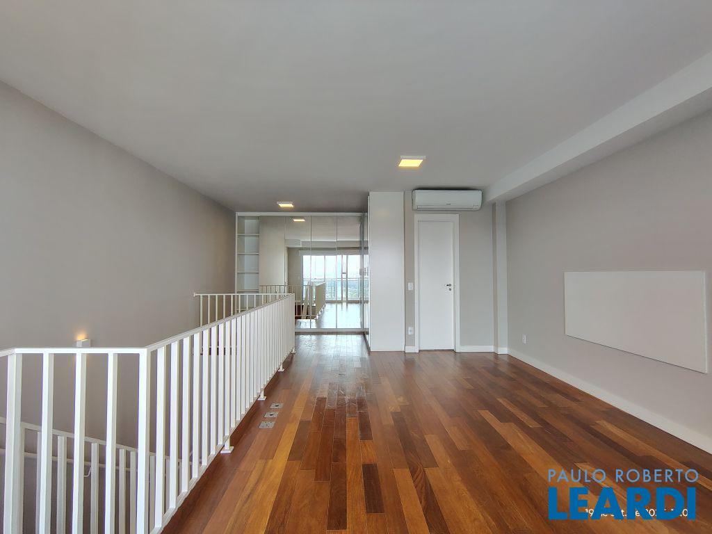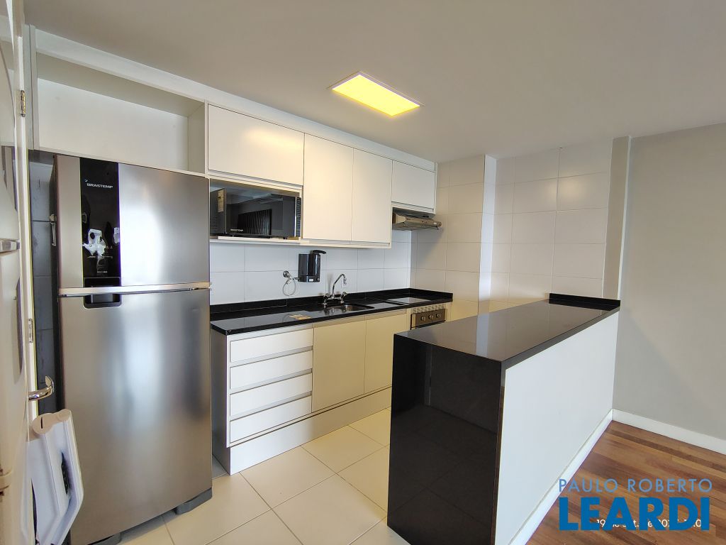 Studio Duplex Mobiliado com Ar-condicionado, 1 suíte + Lavabo, Varanda fechada com vidro, Cozinha americana com Geladeira, Micro ondas, Cooktop e Forno, área de serviço e 2 vagas de garagem. Vista livre permanente.