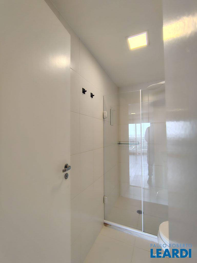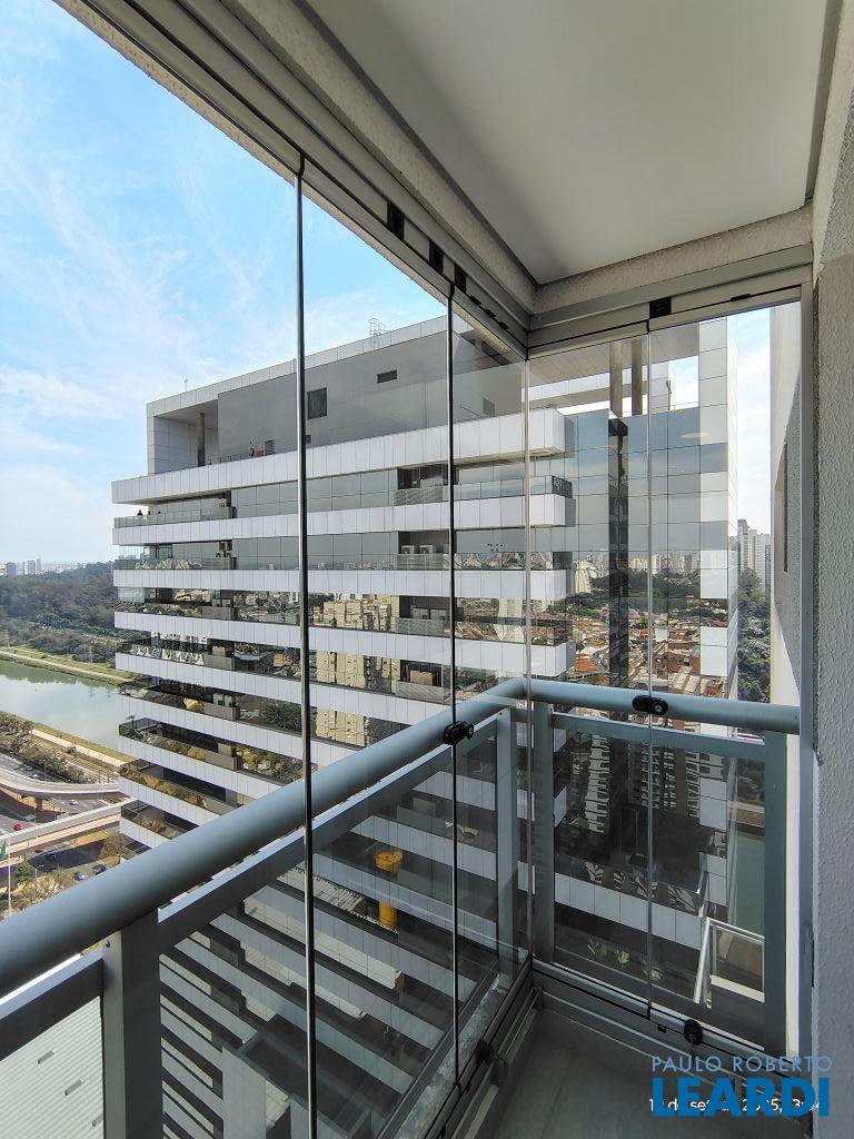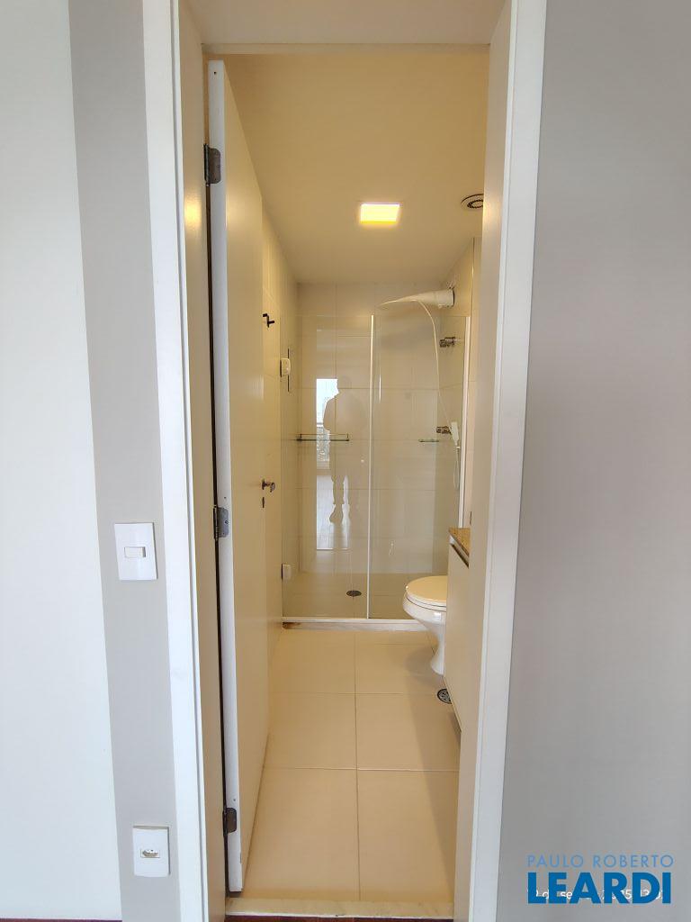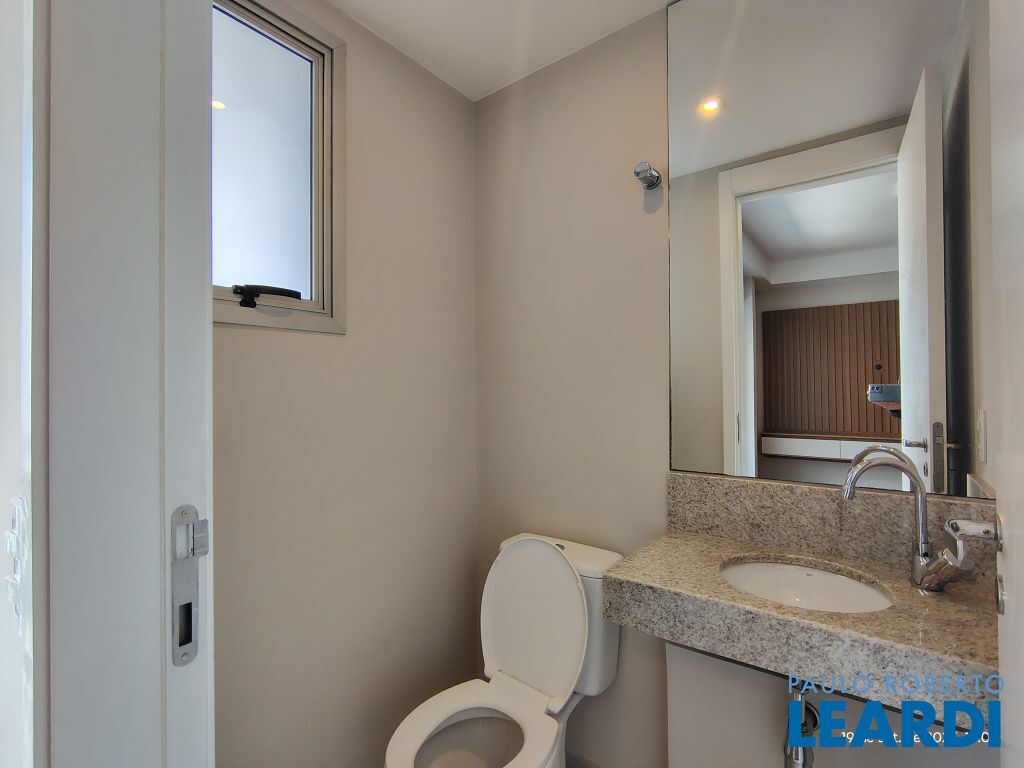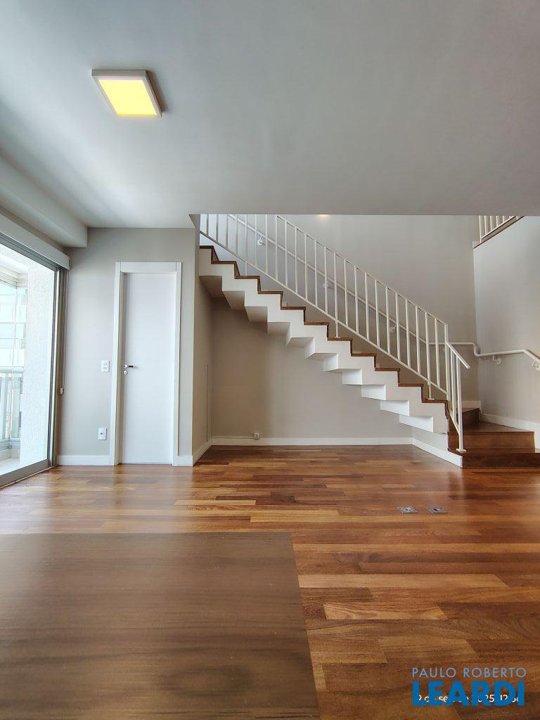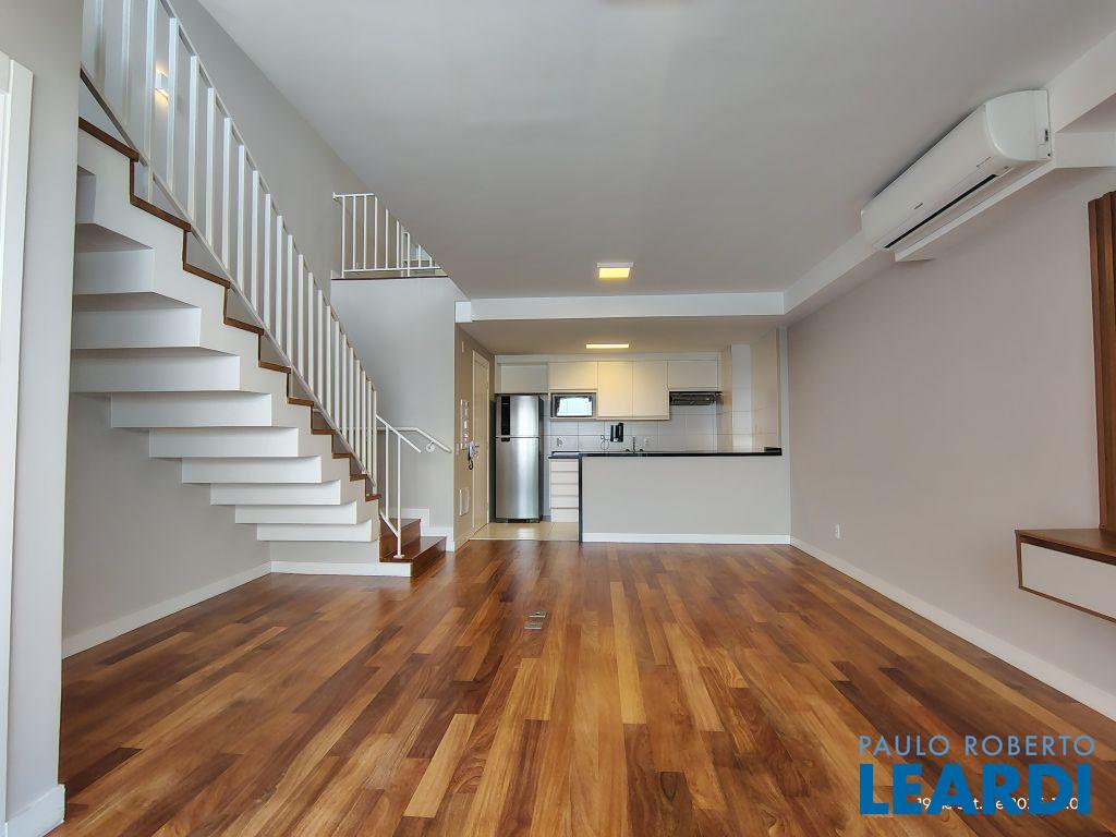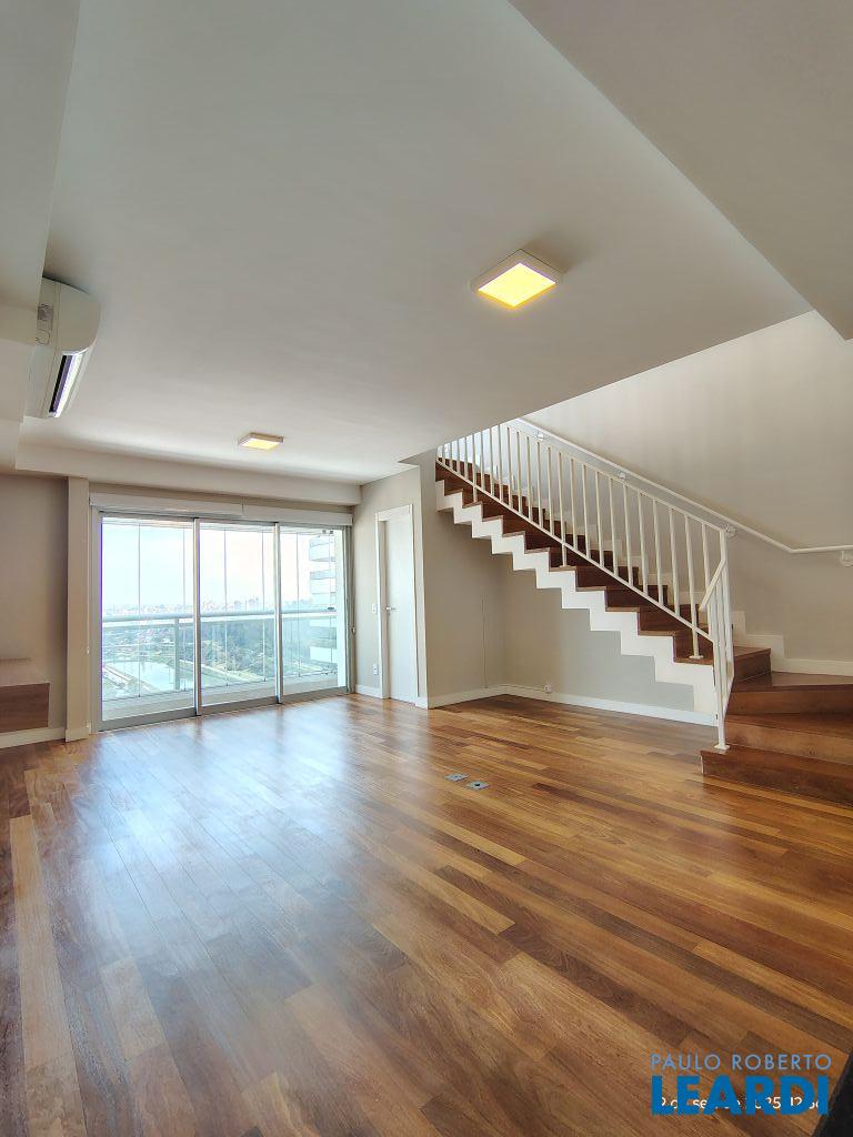 Studio Duplex Mobiliado com Ar-condicionado, 1 suíte + Lavabo, Varanda fechada com vidro, Cozinha americana com Geladeira, Micro ondas, Cooktop e Forno, área de serviço e 2 vagas de garagem. Vista livre permanente.