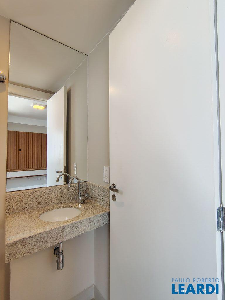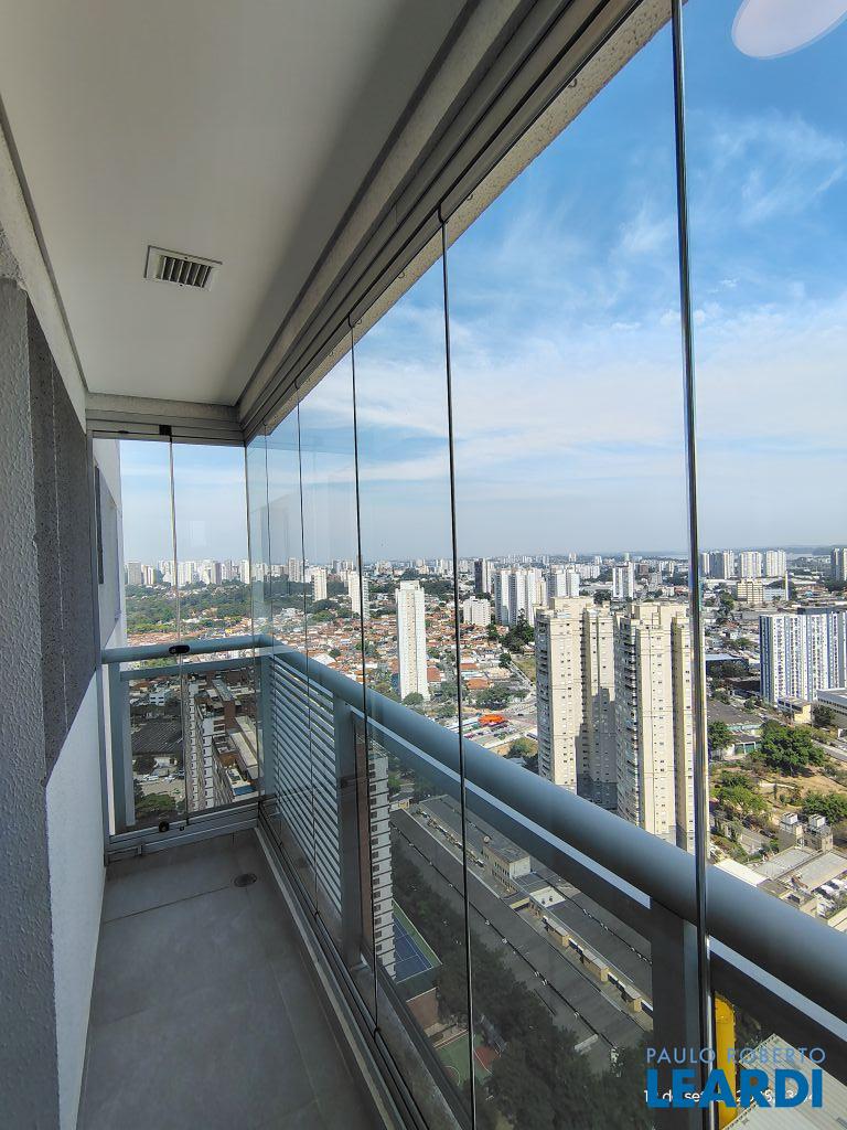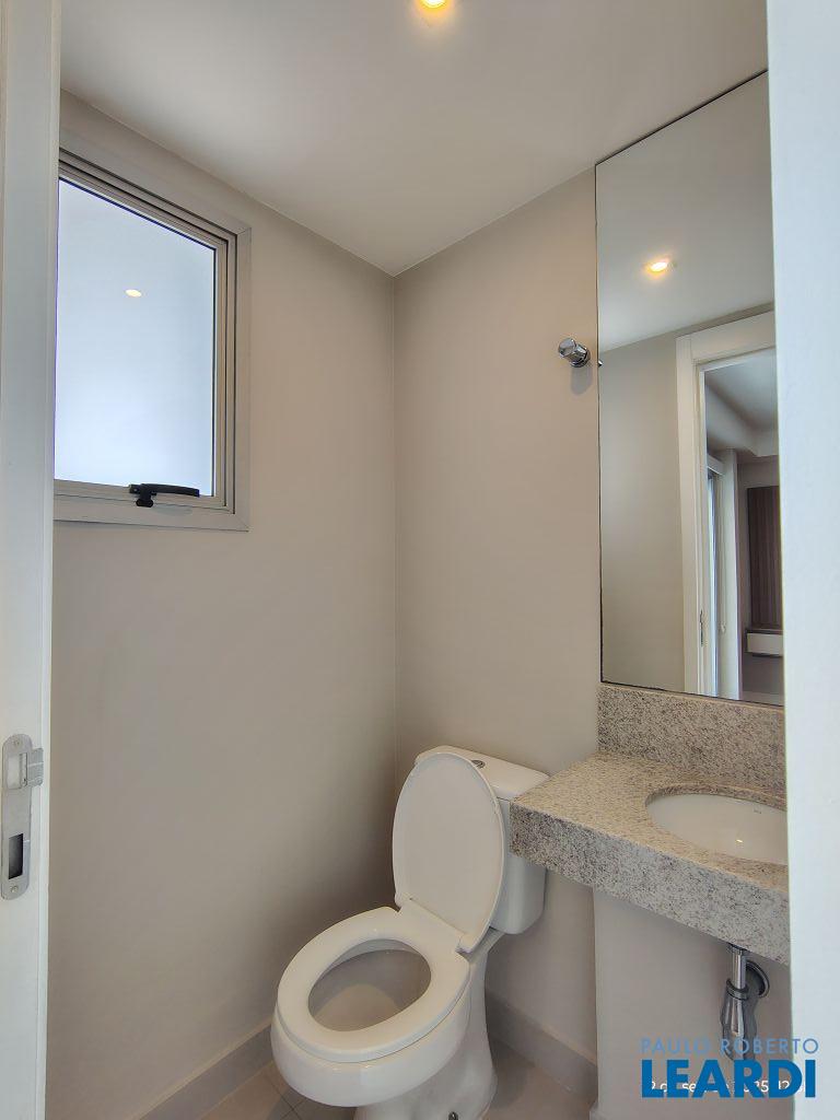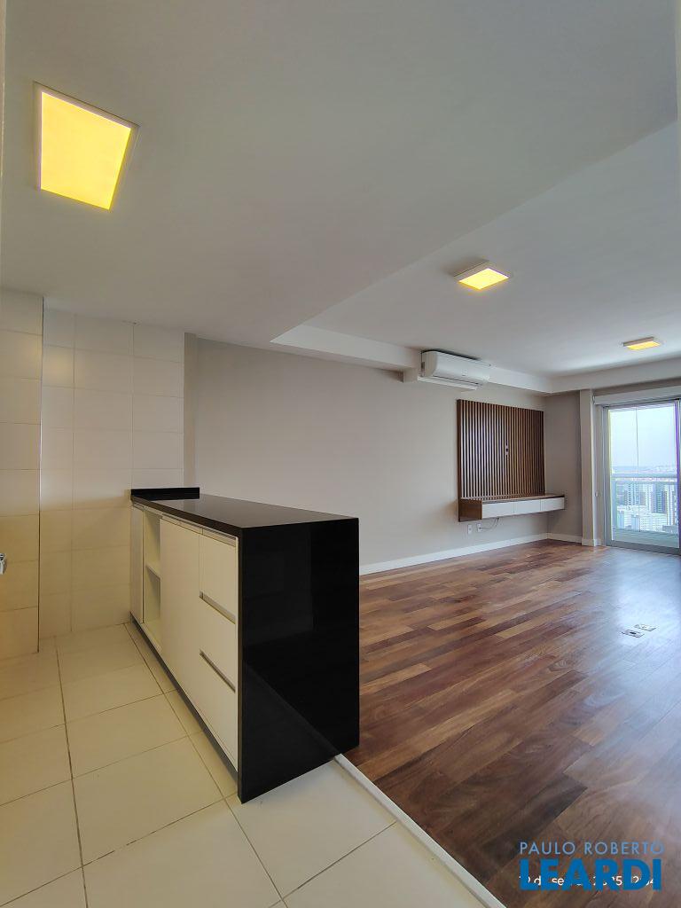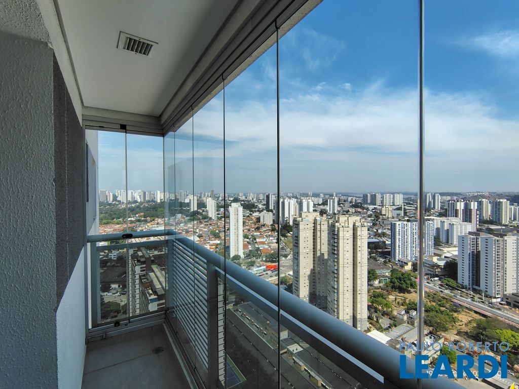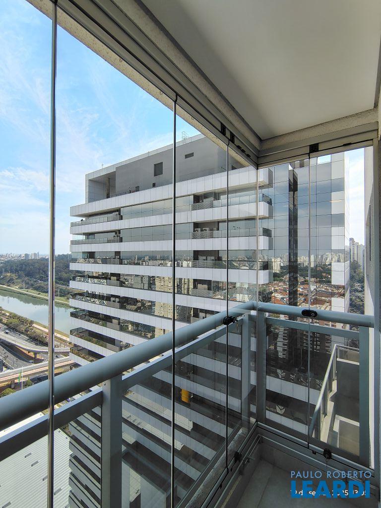 Studio Duplex Mobiliado com Ar-condicionado, 1 suíte + Lavabo, Varanda fechada com vidro, Cozinha americana com Geladeira, Micro ondas, Cooktop e Forno, área de serviço e 2 vagas de garagem. Vista livre permanente.