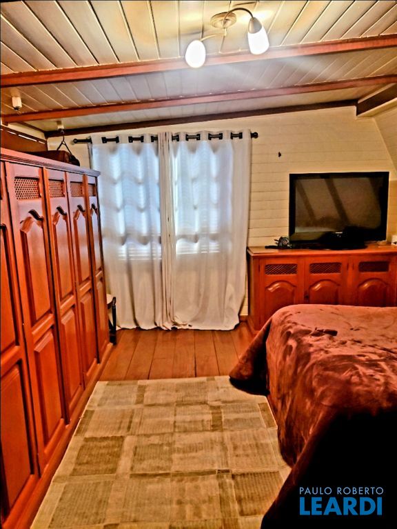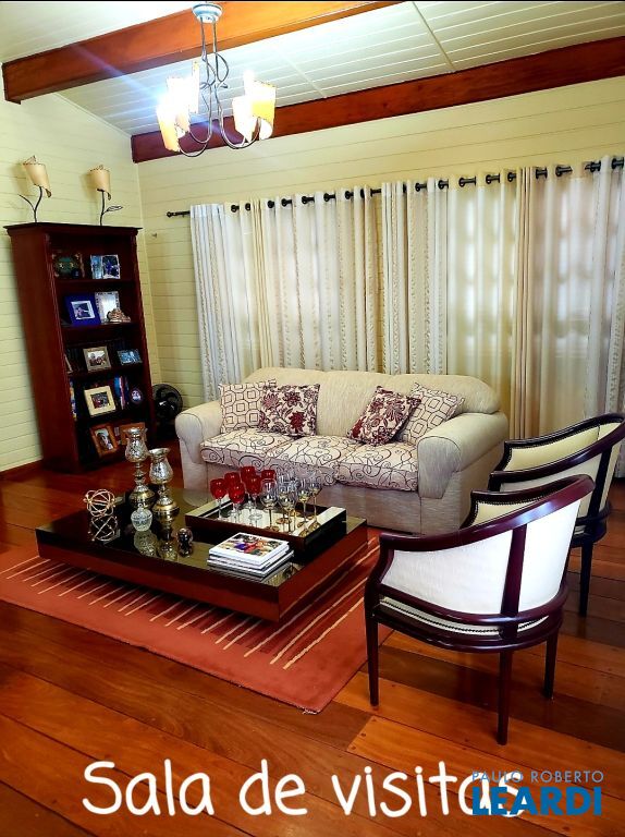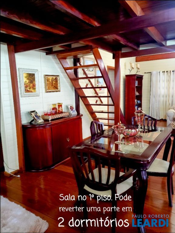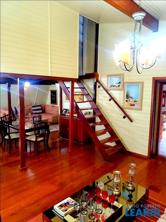 No térreo, é granito. Primeiro e segundo andares, piso em madeira, ipê.