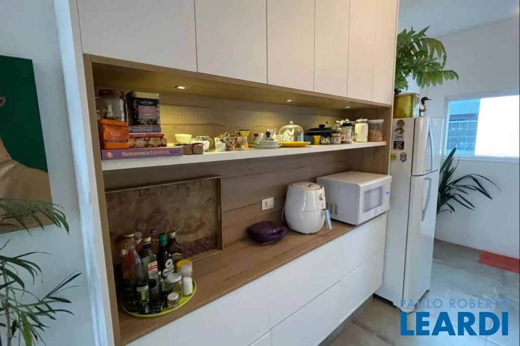 A cozinha é funcional, moderna e bem planejada, com armários sob medida, bancada ampla e integração visual com a área social, trazendo praticidade e charme ao imóvel. A área de serviço é bem ventilada e organizada, atendendo perfeitamente às necessidades do dia a dia.