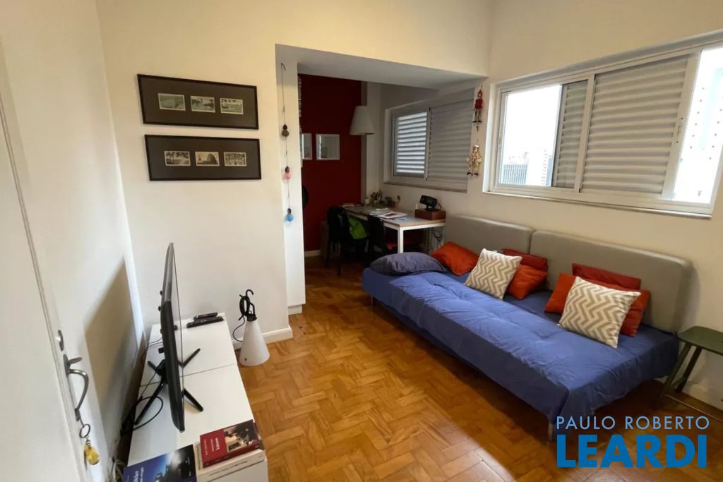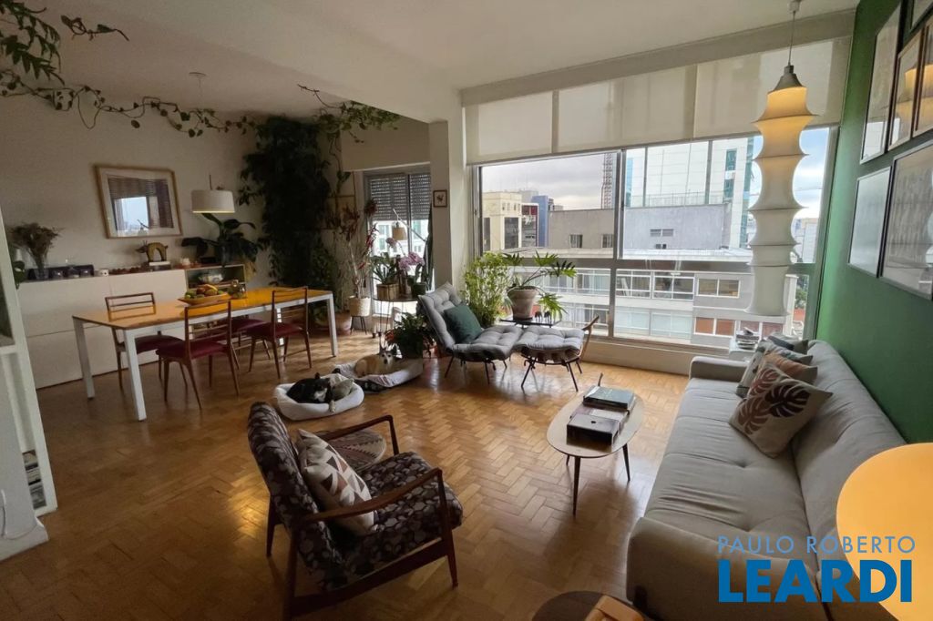 Apartamento à venda em Higienópolis com 97m² muito bem distribuídos, ambientes amplos, iluminados e com excelente ventilação natural. O living é espaçoso, com piso de madeira em excelente estado, janelões que proporcionam ótima entrada de luz e uma vista urbana agradável, ideal para quem valoriza conforto, elegância e integração dos ambientes. A sala comporta com facilidade dois ambientes, criando um espaço acolhedor para receber amigos ou relaxar no dia a dia.