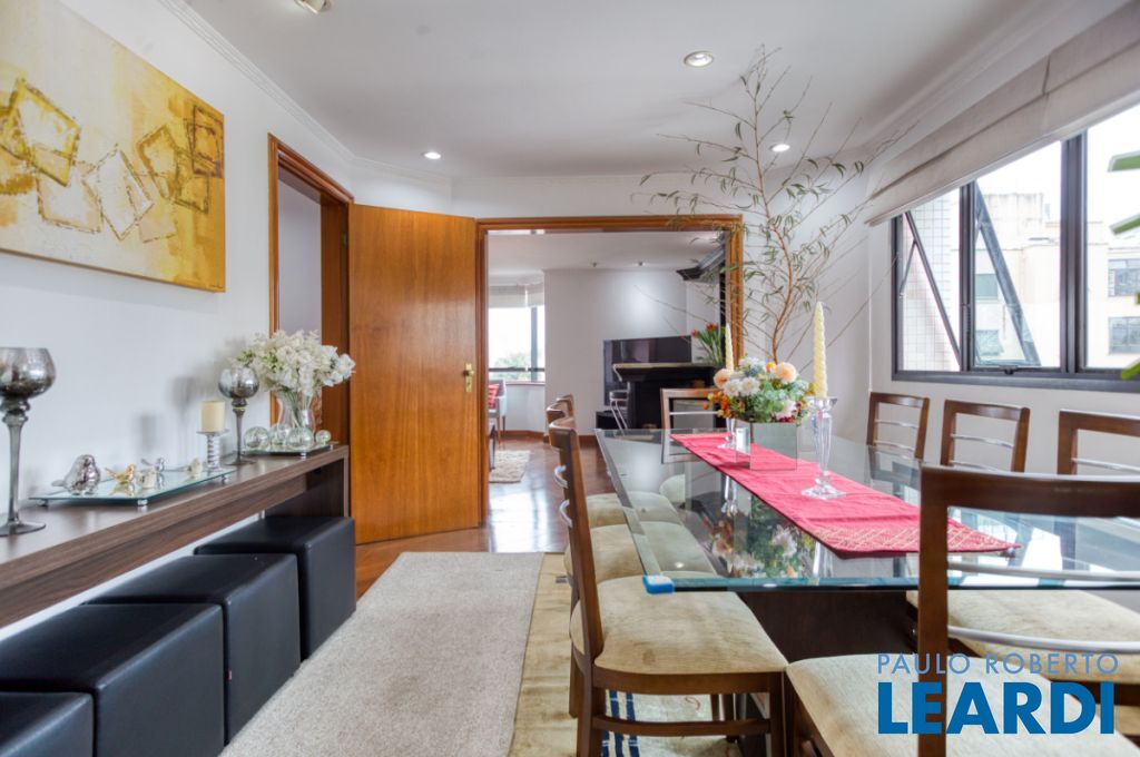 Imagine viver em um endereço que reúne amplitude, conforto, verde e conveniência este é o lar que você encontra na Rua Safira, Aclimação. O apartamento de 236 m² de área útil oferece espaço generoso e bem distribuído: são 4 dormitórios, sendo duas suítes, totalizando 5 banheiros, ideal para famílias ou para quem busca amplitude e privacidade. A sala com varanda e lareira traz um charme e um requinte únicos. A sala de estar é exuberante com bar em madeira, o que proporciona momentos para construir memórias afetivas com familiares e amigos. Há ainda uma charmosa sala de jantar e uma copa para as refeições mais rápidas. Complementam a planta 3 vagas de garagem, dependência de empregada e depósito na garagem estrutura rara e valiosa em São Paulo. O condomínio cuida do seu bem-estar com lazer completo: churrasqueira para encontros, academia para cuidar da saúde, piscina e sauna para relaxar, salão de festas para ocasiões especiais um verdadeiro clube particular dentro de casa.