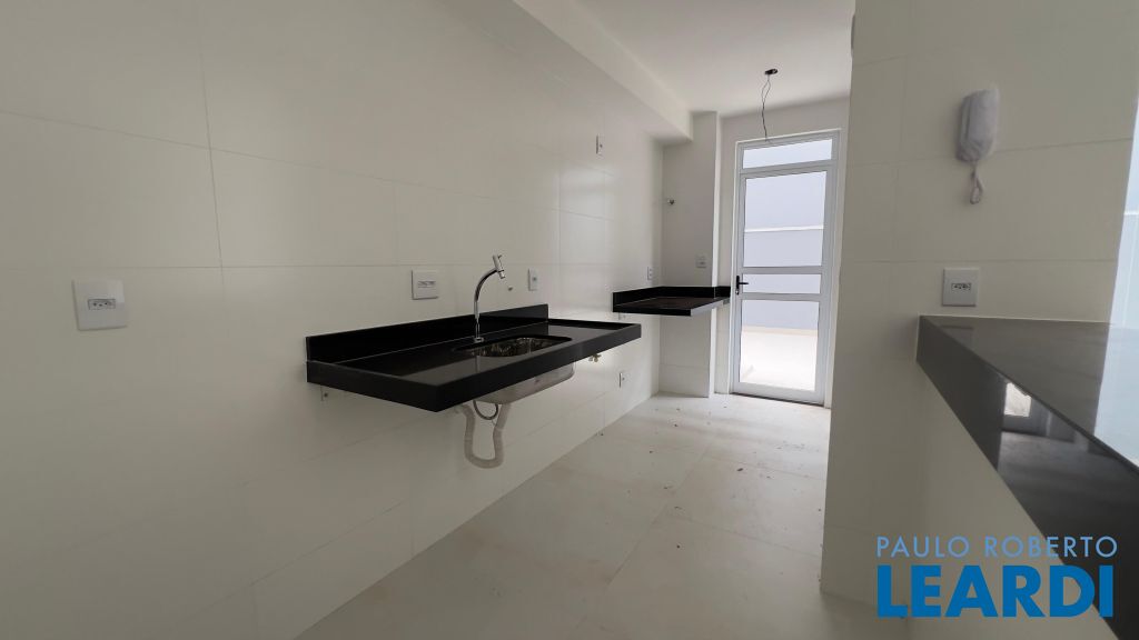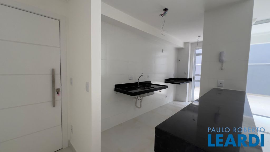 - Área Social: Sala para 2 ambientes integrada com cozinha americana, varanda e acesso a área externa. Piso em porcelanto, bancadas em granito preto.