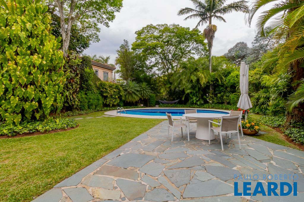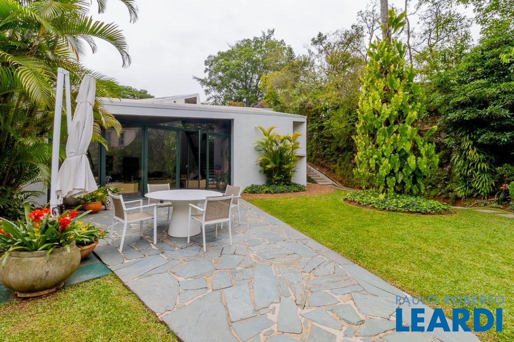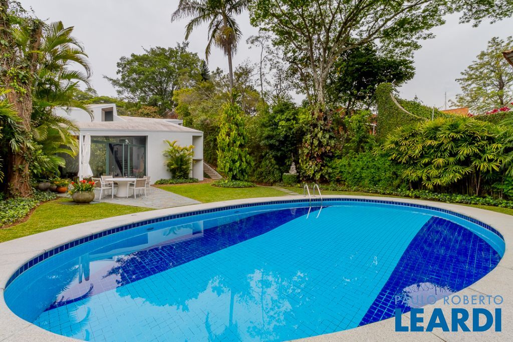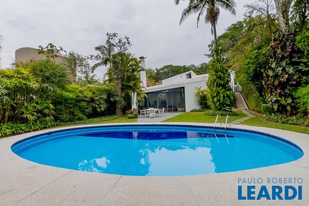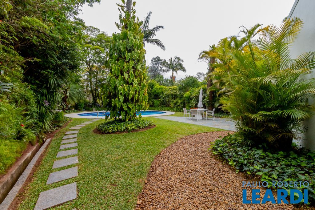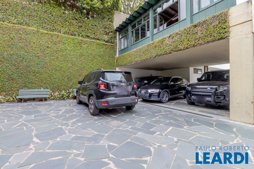 Implantada em um terreno privilegiado de 1.550 m², com 422 m² de área construída, a casa se integra de maneira orgânica ao entorno. O projeto paisagístico, assinado e cuidadosamente executado, faz da área externa uma continuação poética dos interiores: jardins desenhados por sucessões de níveis, maciços floridos e caminhos que revelam cenários, onde as congéias merecem destaque árvores que pontuam o jardim com flores vibrantes e textura, criando enquadramentos naturais que variam conforme as estações. A piscina, estrategicamente posicionada, reflete o céu pelas claraboias e pelos recortes geométricos dos tetos, enquanto o verde circunda todos os ângulos da casa.