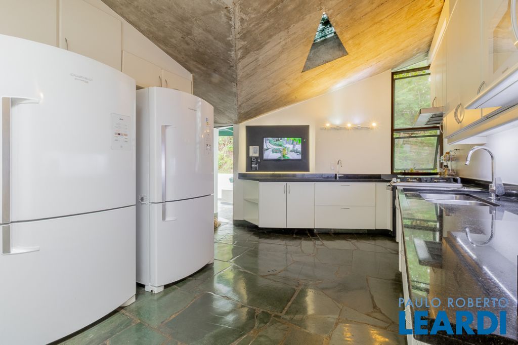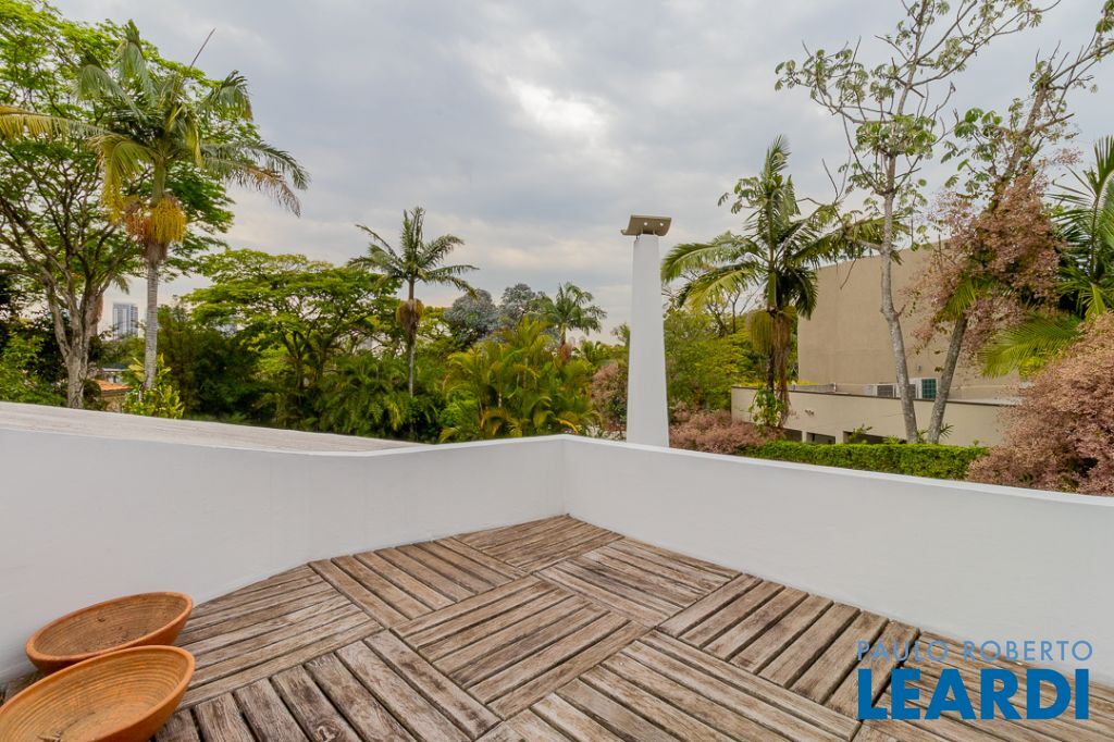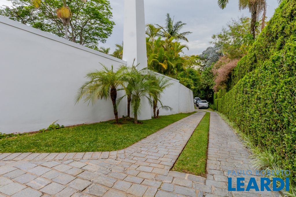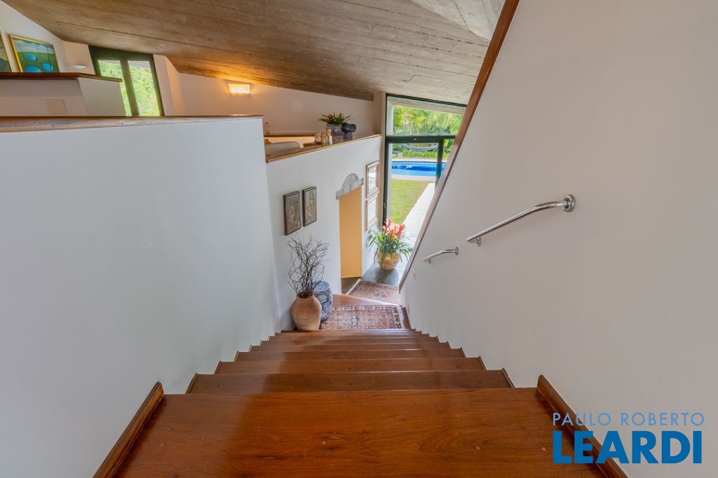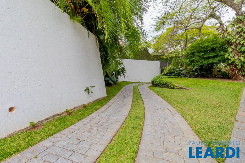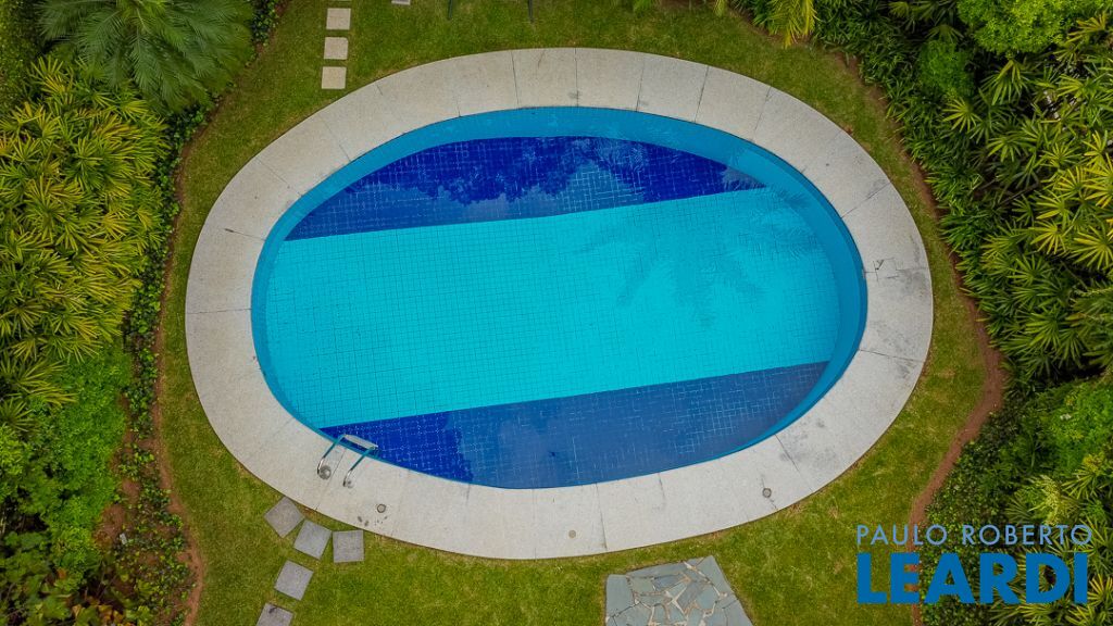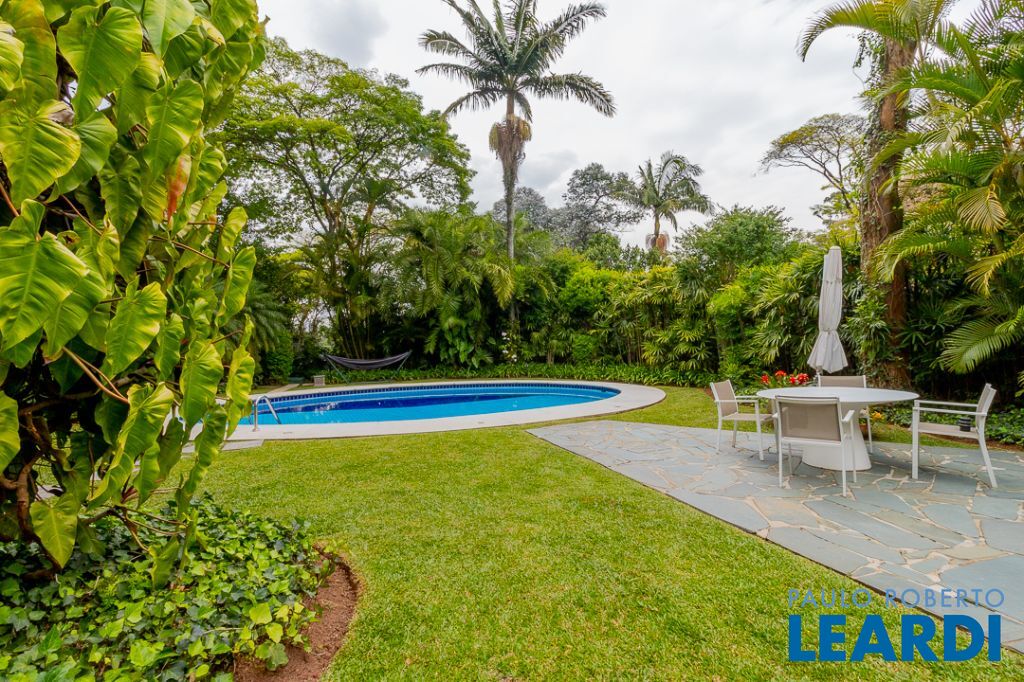 Implantada em um terreno privilegiado de 1.550 m², com 422 m² de área construída, a casa se integra de maneira orgânica ao entorno. O projeto paisagístico, assinado e cuidadosamente executado, faz da área externa uma continuação poética dos interiores: jardins desenhados por sucessões de níveis, maciços floridos e caminhos que revelam cenários, onde as congéias merecem destaque árvores que pontuam o jardim com flores vibrantes e textura, criando enquadramentos naturais que variam conforme as estações. A piscina, estrategicamente posicionada, reflete o céu pelas claraboias e pelos recortes geométricos dos tetos, enquanto o verde circunda todos os ângulos da casa.