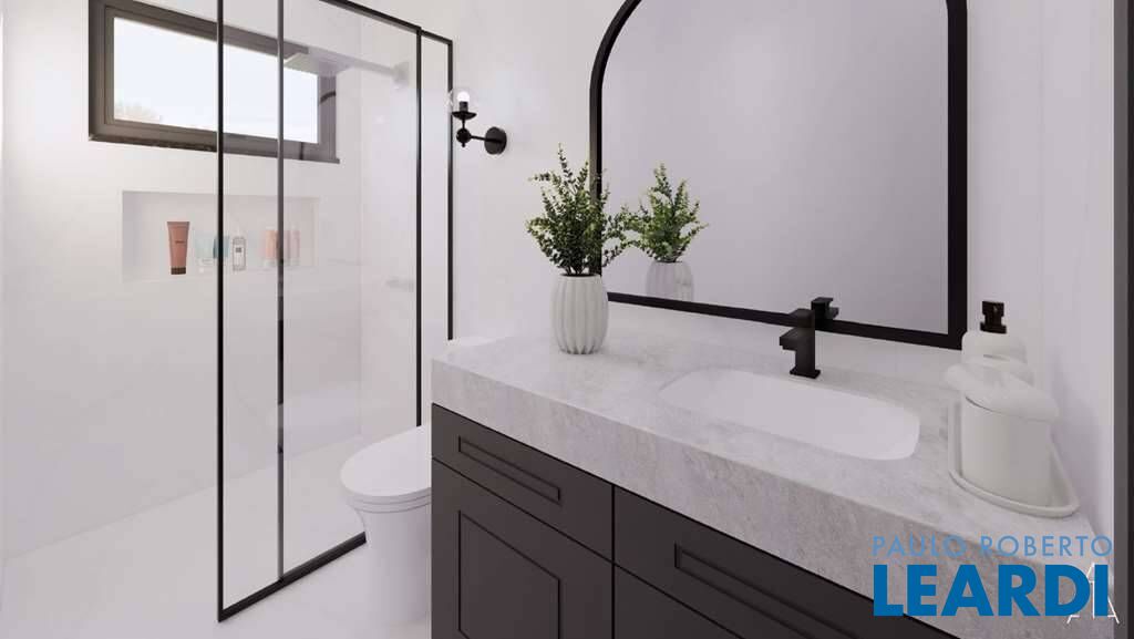 Banheiros com torneiras mono comando, box de vidro, nichos e ralos horizontais. Sendo a master com 2 cubas e banheira.
