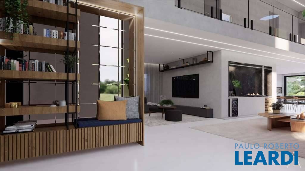 Living para 5 ambientes totalmente integrados, em parte com pé direito duplo.