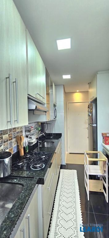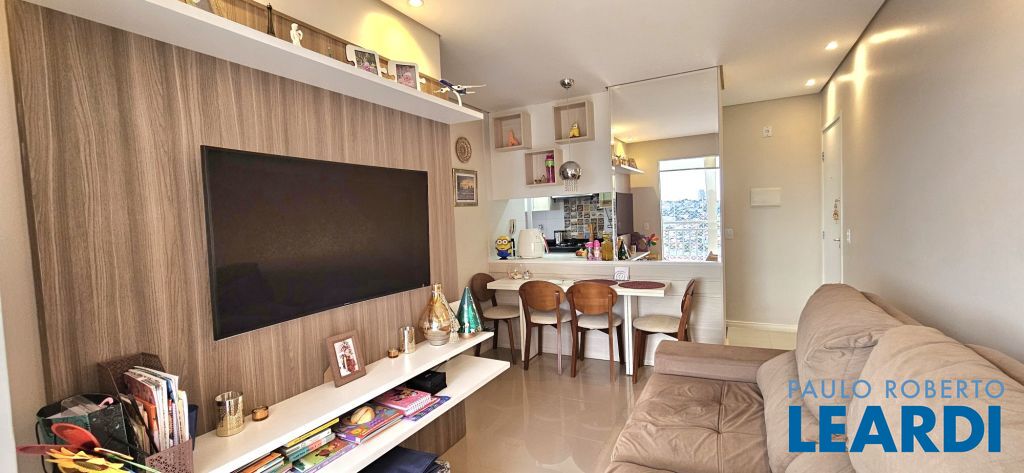 Possui cozinha planejada, sala ampla com varanda fechada em blindex, banheiro social, lavanderia e 02 vagas de garagem cobertas.
