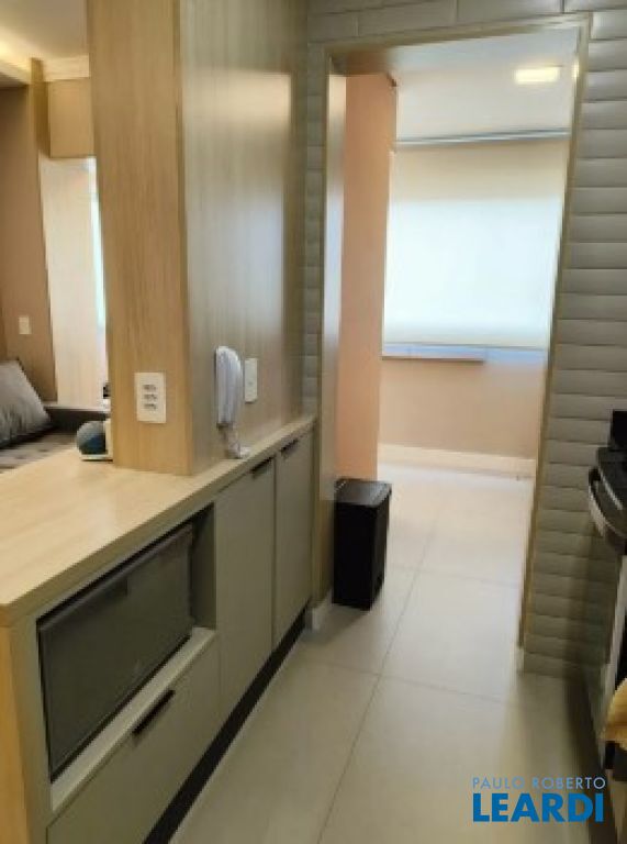 Varanda integrada à sala e cozinha.