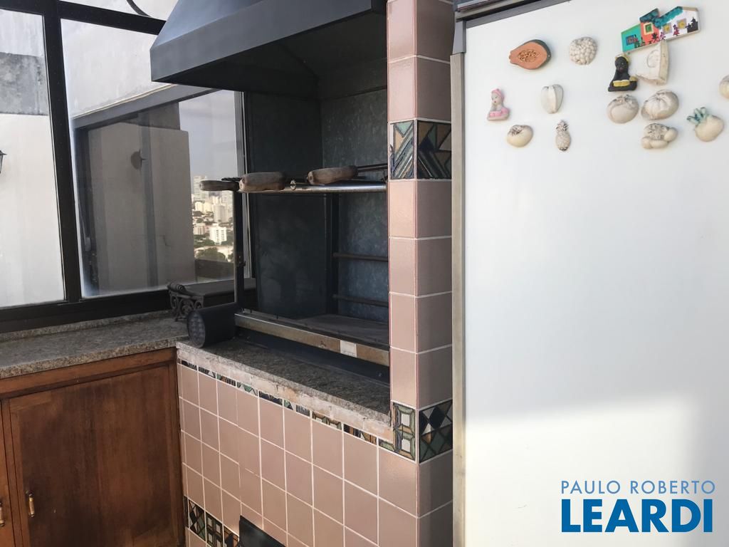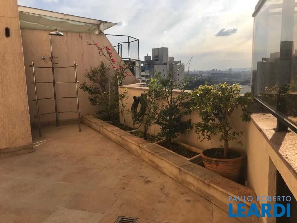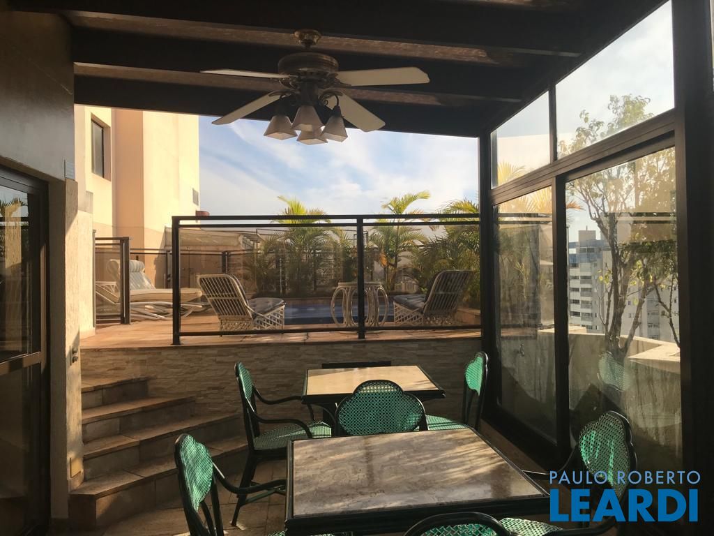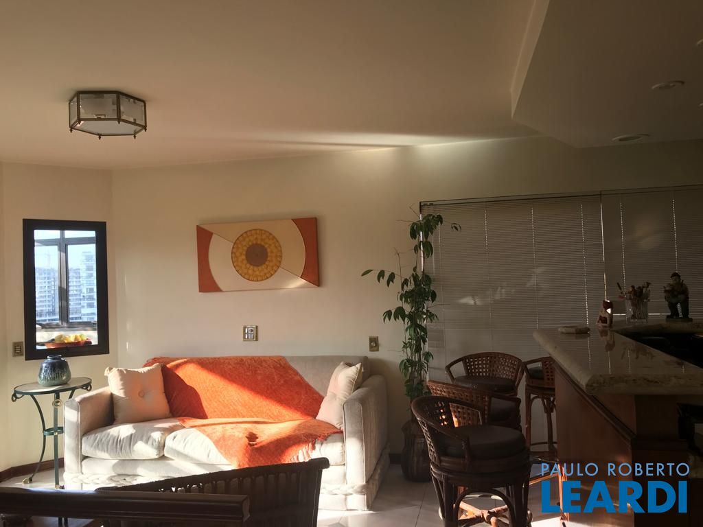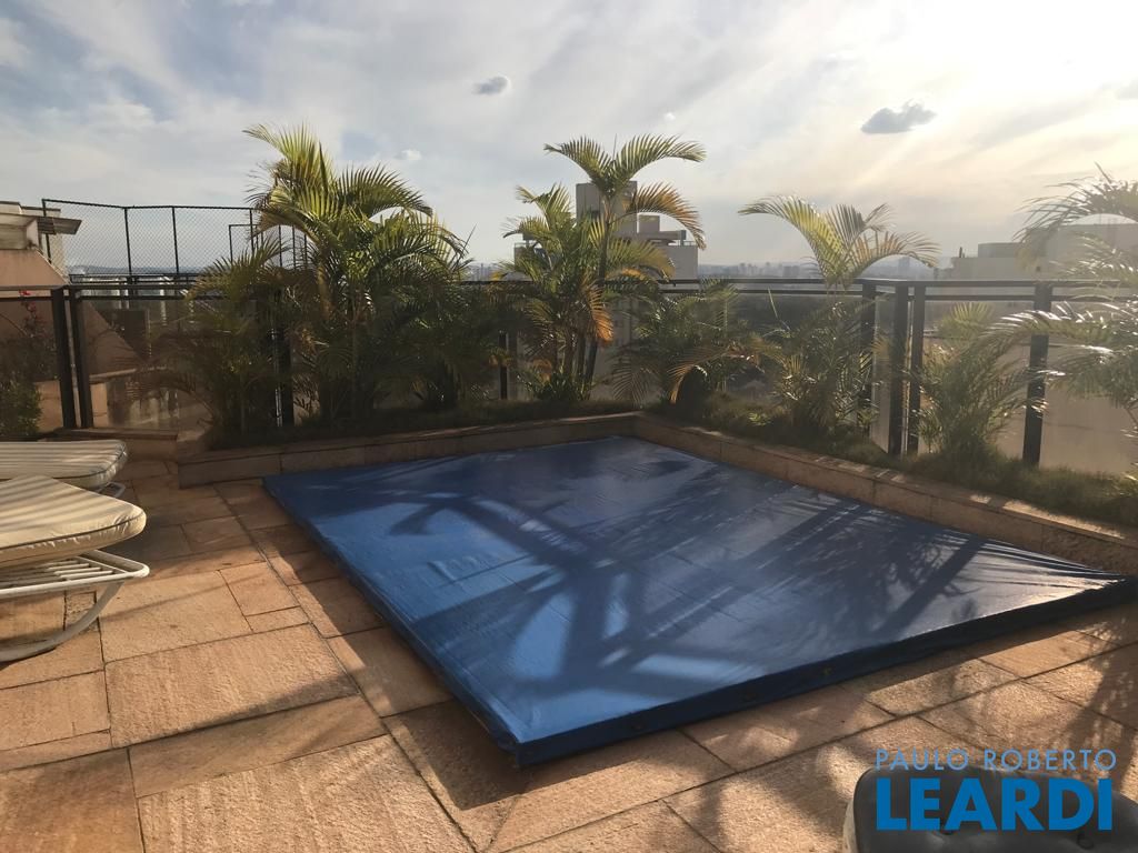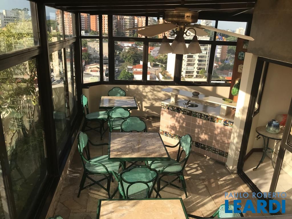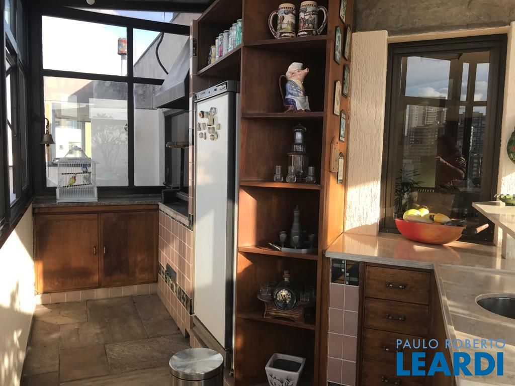 No andar de baixo, sala de estar com varanda, sala de jantar, lavabo, 3 dormitórios sendo uma suíte com closet e varanda, e um dos dormitórios serve como closet, repleto de armários. Cozinha espaçosa também repleta de armários, boa área de serviço com dependência completa de empregada. No andar de cima, piscina, sauna, ducha, churrasqueira, bar e sala íntima, além de uma pequena horta, mini cozinha e lavabo.