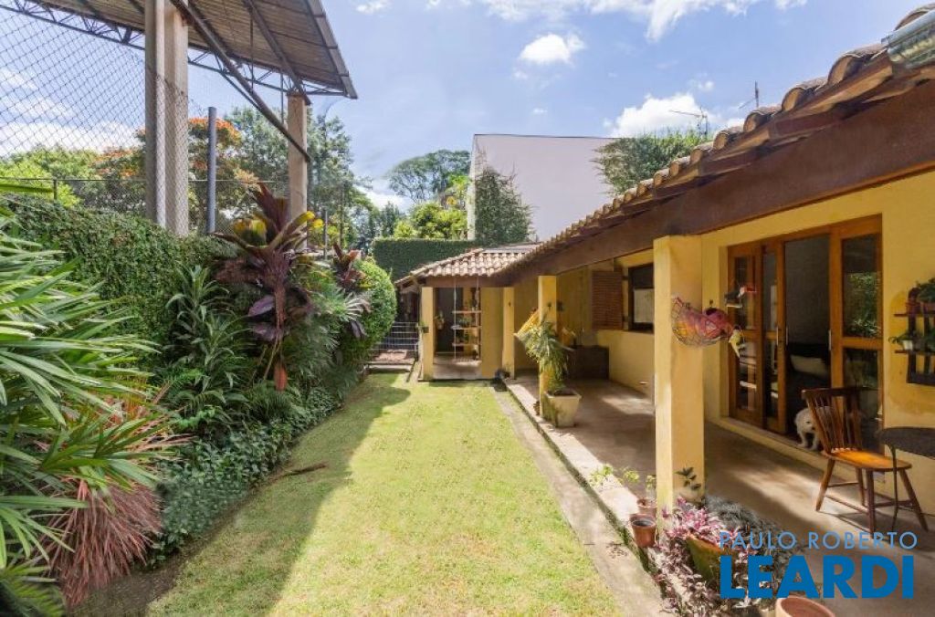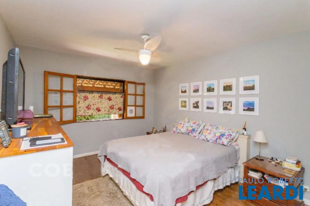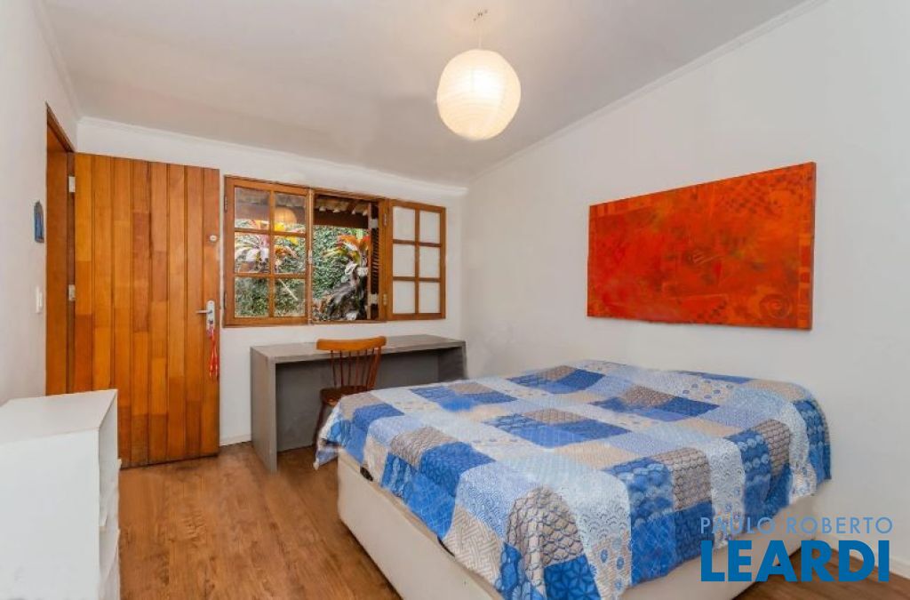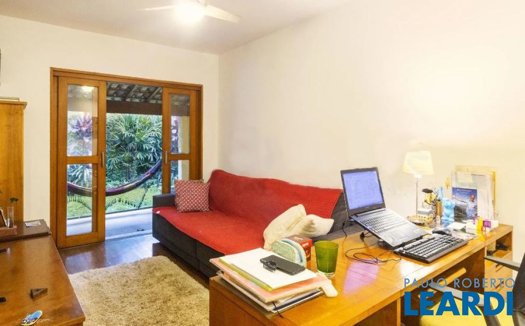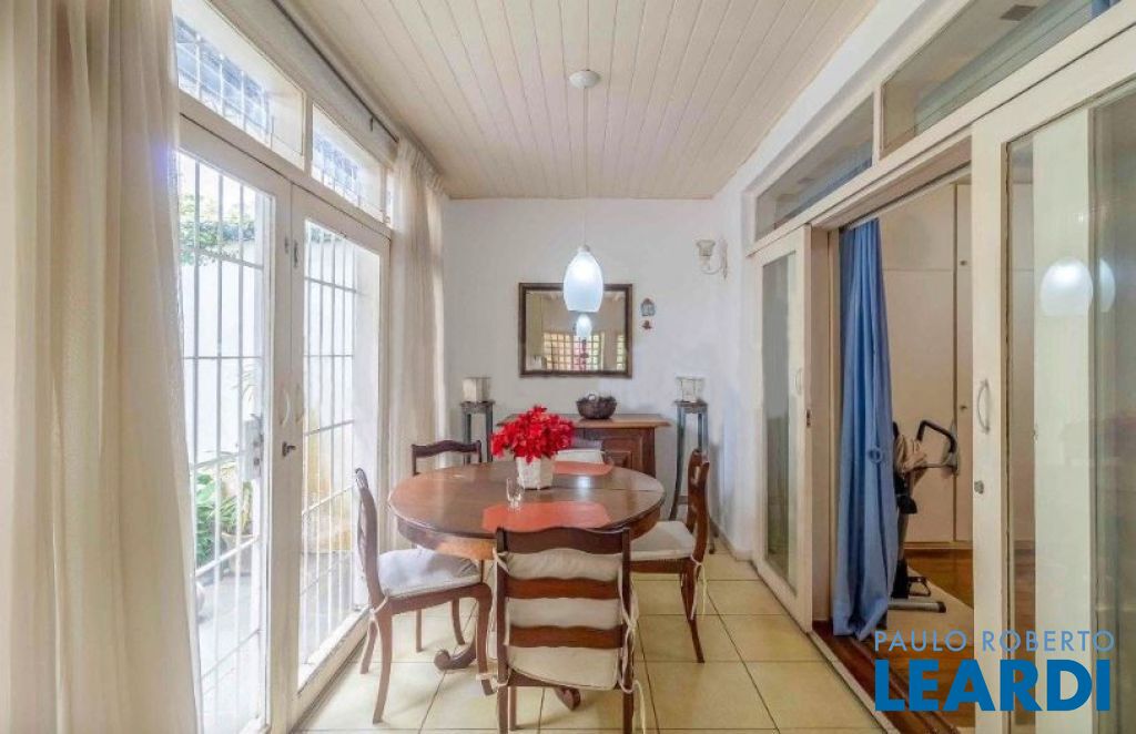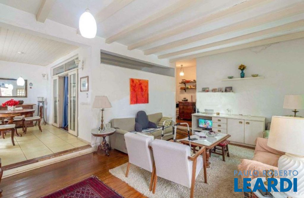 Casa térrea, que numa reforma foi dividida ficando de um lado, um pequeno living, sala de jantar e uma suíte. Do outro lado, living com sala de jantar, claridade, natural, escritório separado através de uma porta de correr.