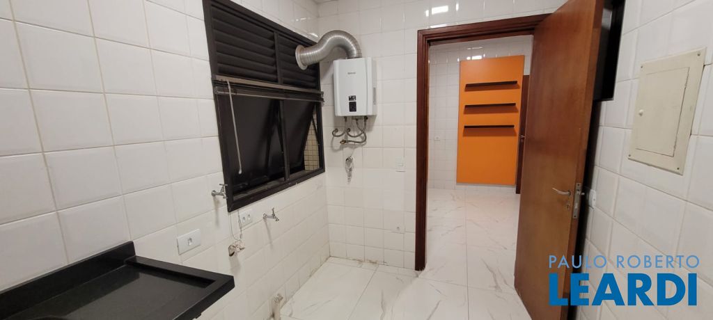 Área de serviço com armário e banheiro;