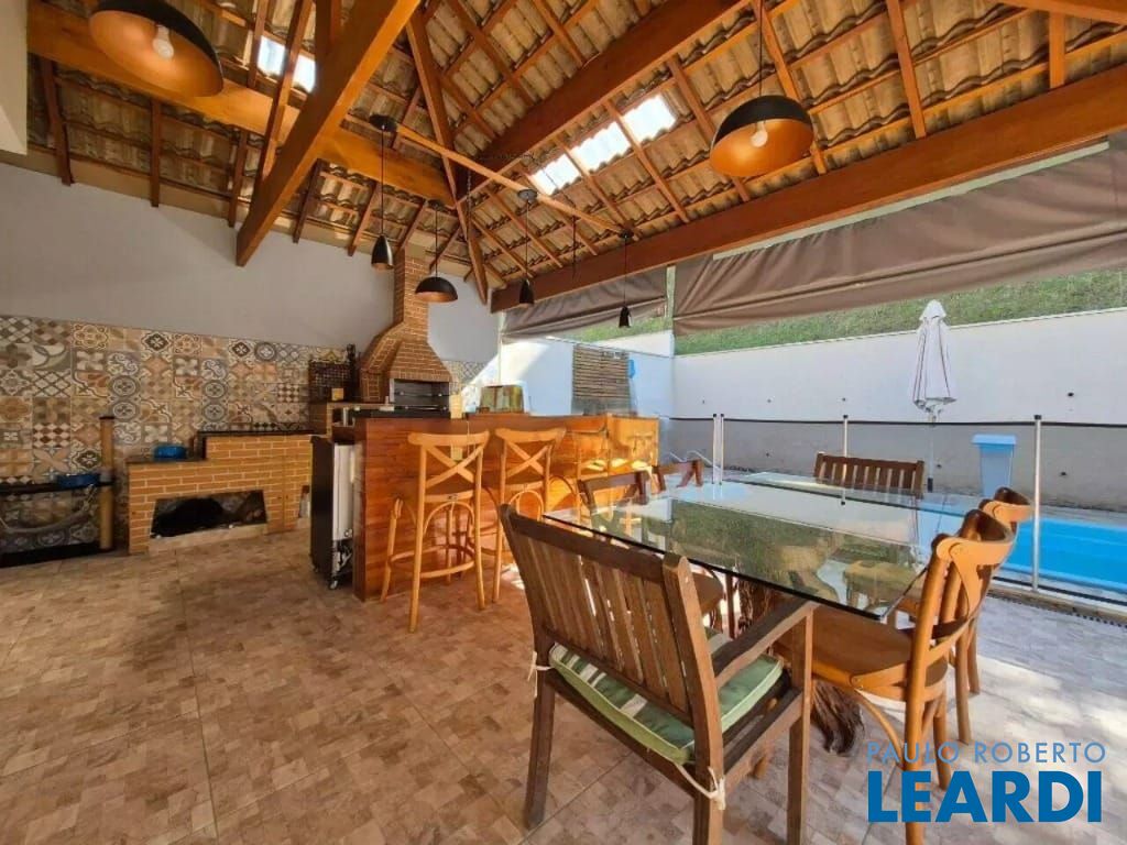 Sala de estar, sala de jantar e sala para TV ou escritório, lavabo, 3 dormitórios (sendo 1 suíte com 2 closets - reversível para 4 dormitórios), cozinha integrada à área de serviço, Área gourmet completa com churrasqueira, forno a lenha, fogão, bancada generosa e piscina.