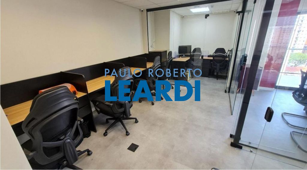 A sala conta com divisórias, mesas e cadeiras de trabalho, além de armários e ar-condicionado