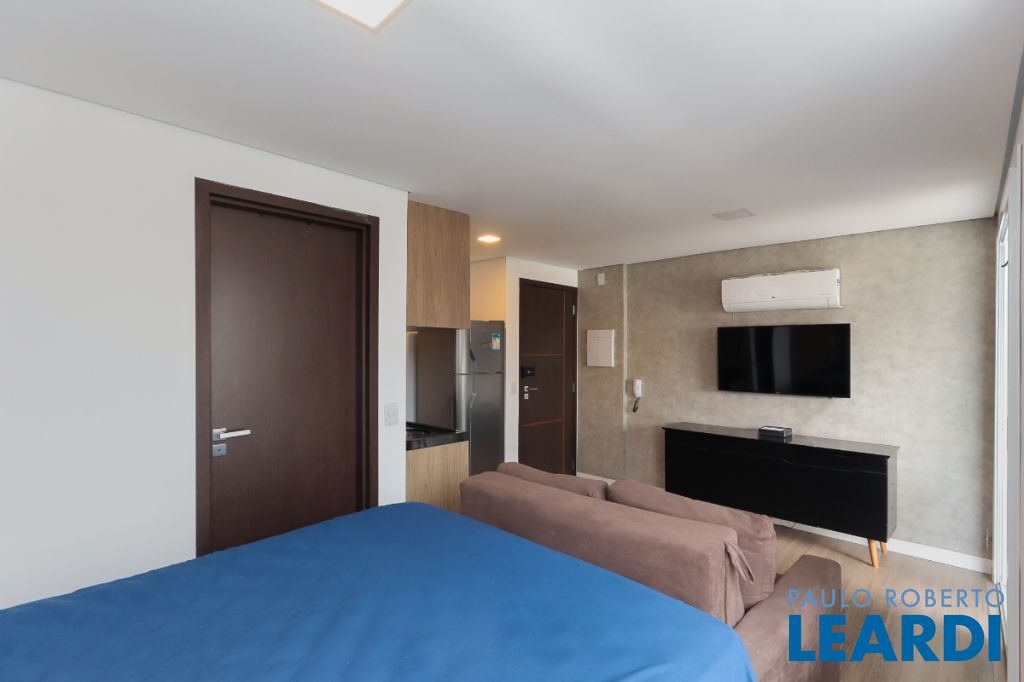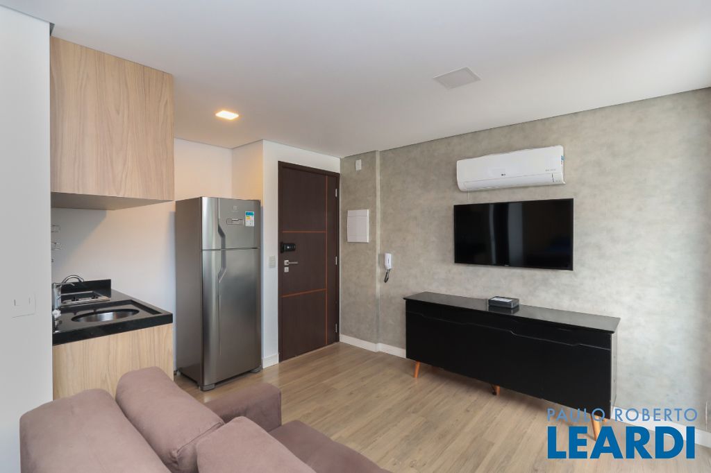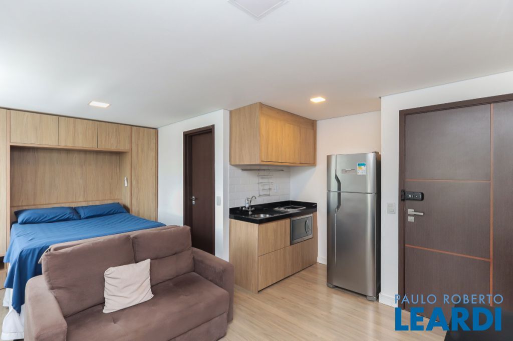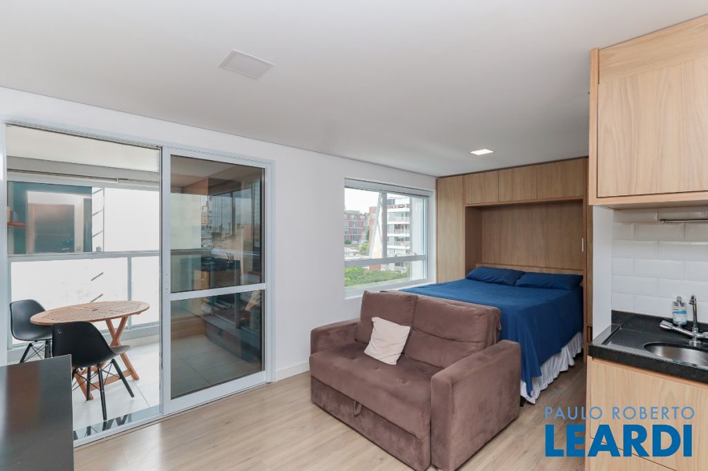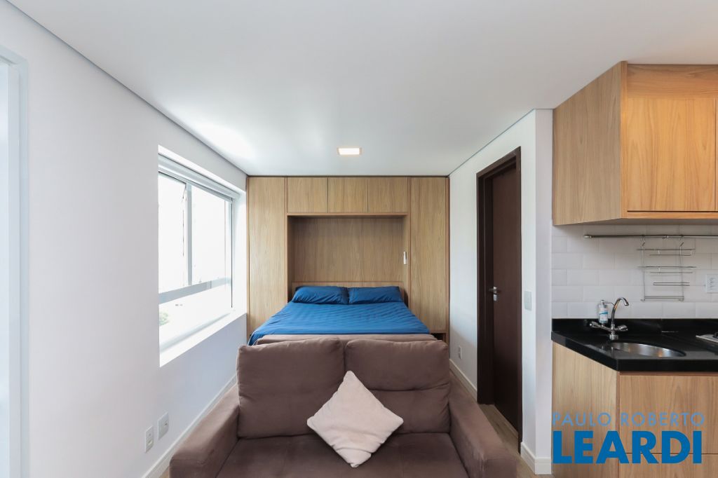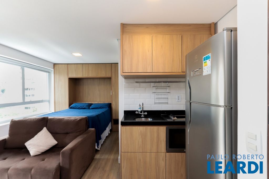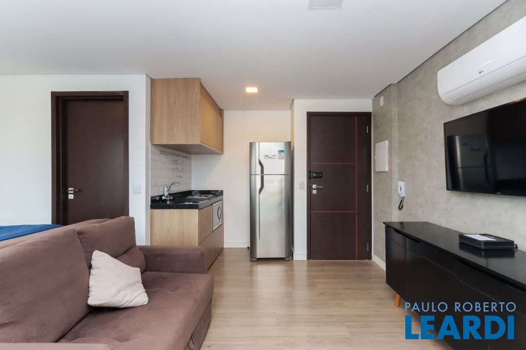 Apartamento moderno de 29 m² na Rua Fradique Coutinho, na Vila Madalena, em São Paulo, construído em 2023 e atualmente desocupado.