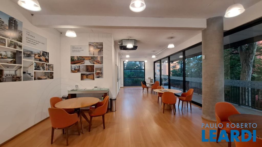 Sala comercial à venda com 143,15 m², ampla, arejada e com excelente iluminação natural. O espaço conta com grandes janelas envidraçadas, proporcionando um ambiente agradável, cercado por áreas verdes e com entrada charmosa e acolhedora.