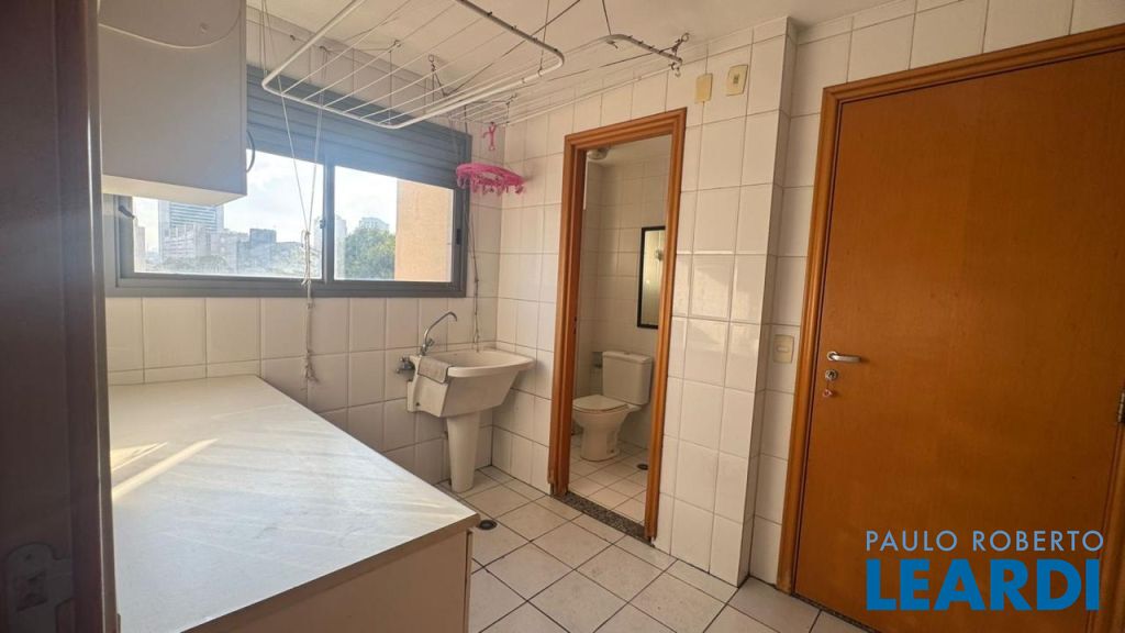 A cozinha é ampla, com ventilação natural, integrada à área de serviço completa, incluindo dependência.