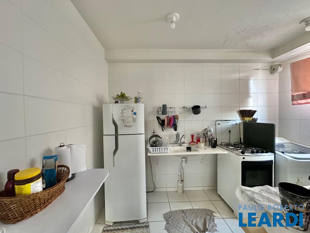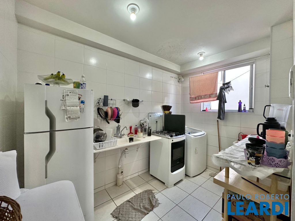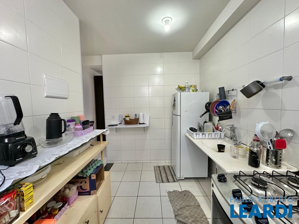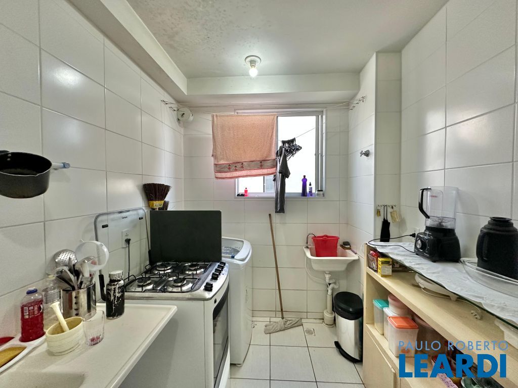 A cozinha é prática e bem distribuída, com bancada em granito, além de área de serviço integrada e organizada.