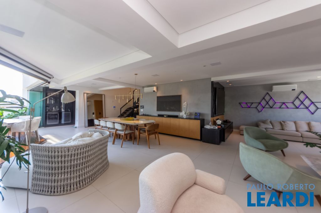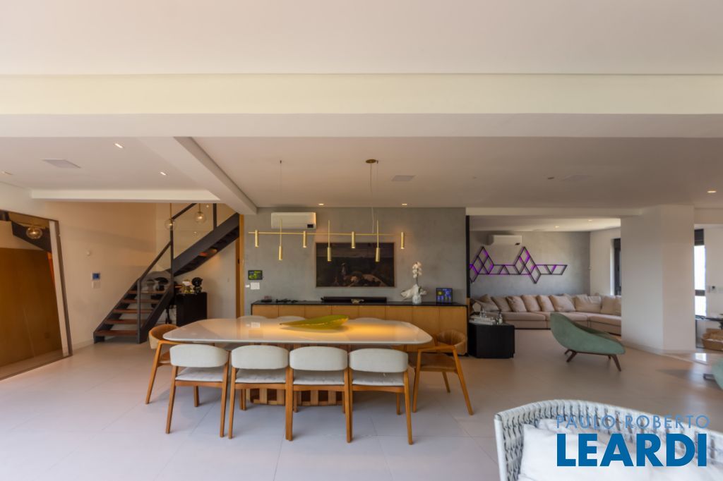 O imóvel é um imponente duplex de 270m², recém-reformado e decorado com extremo bom gosto, vendido em formato porteira fechada pronto para morar, com tudo incluso. Conta com um projeto moderno e funcional, além de automação completa de iluminação e som, proporcionando conforto e tecnologia em todos os ambientes.