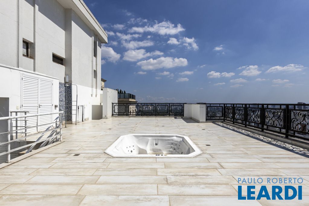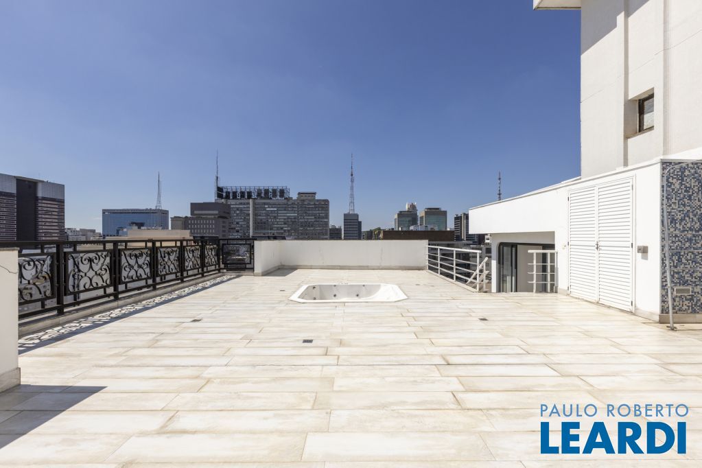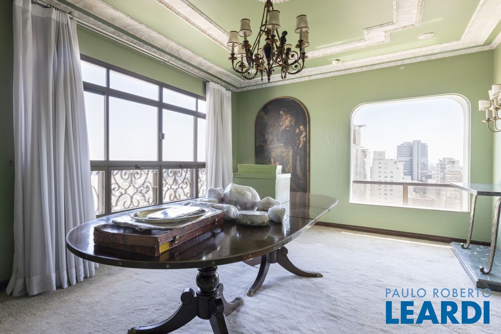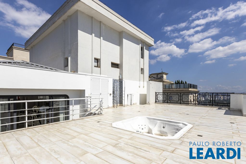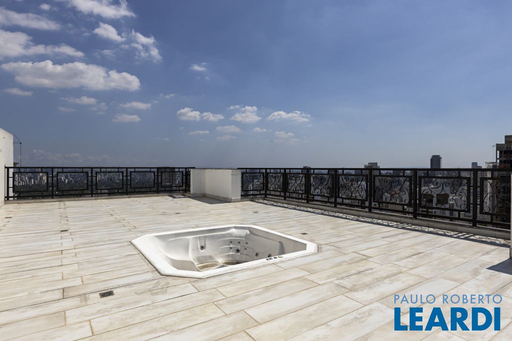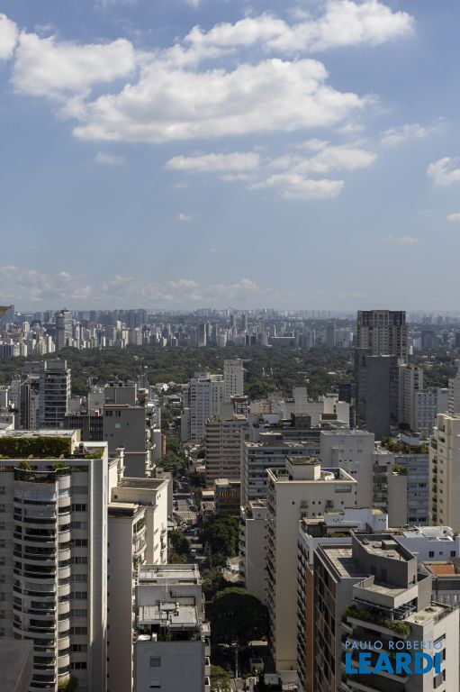 Cobertura única nos Jardins, daquelas que impressionam logo no primeiro olhar. O grande destaque é sua vista 360°, que traz uma sensação rara de espaço, luz e exclusividade. São três andares, todos atendidos por elevador privativo e escadas internas, com uma planta que combina imponência e potencial.