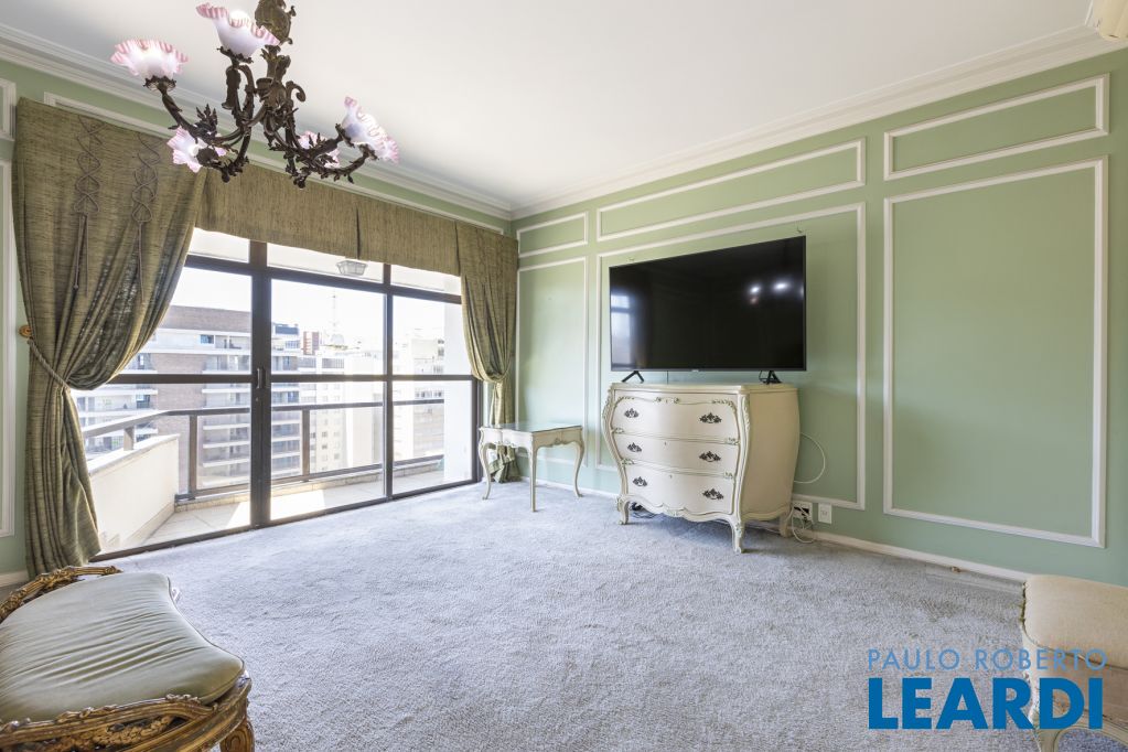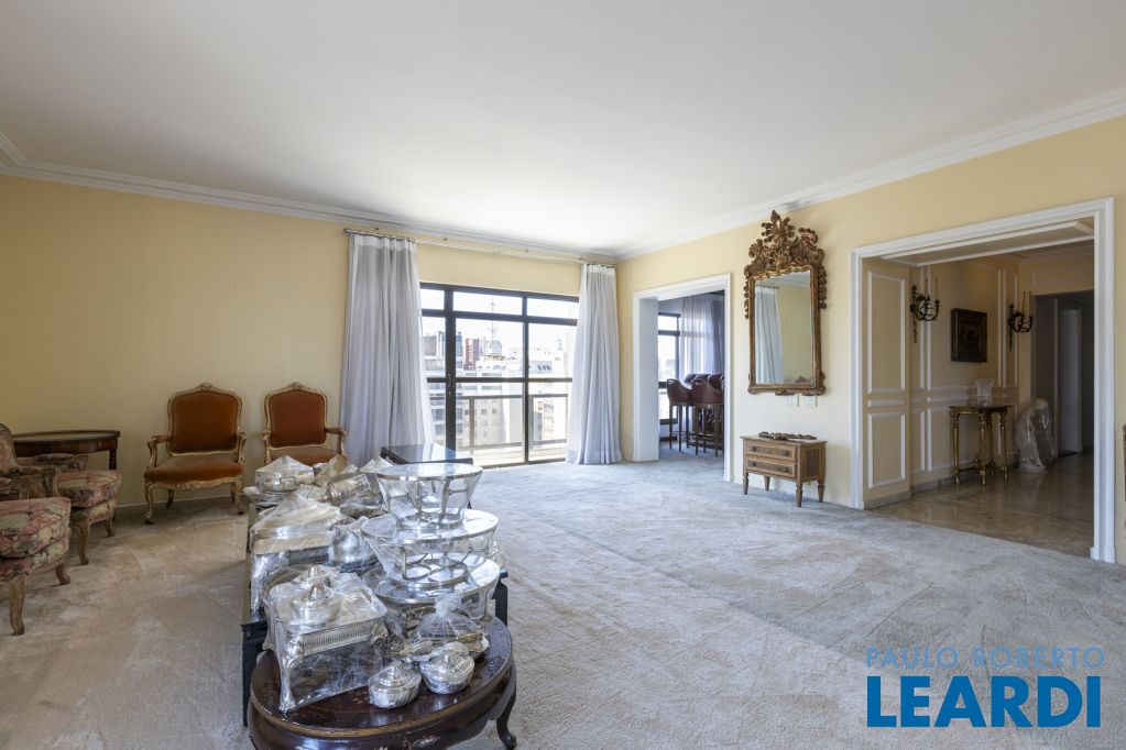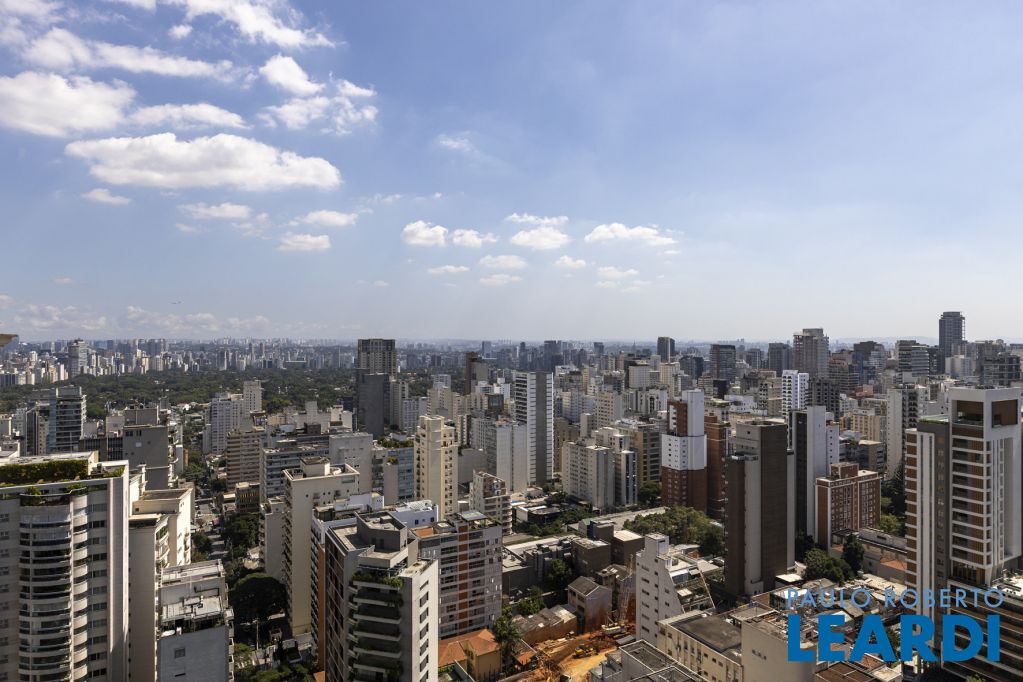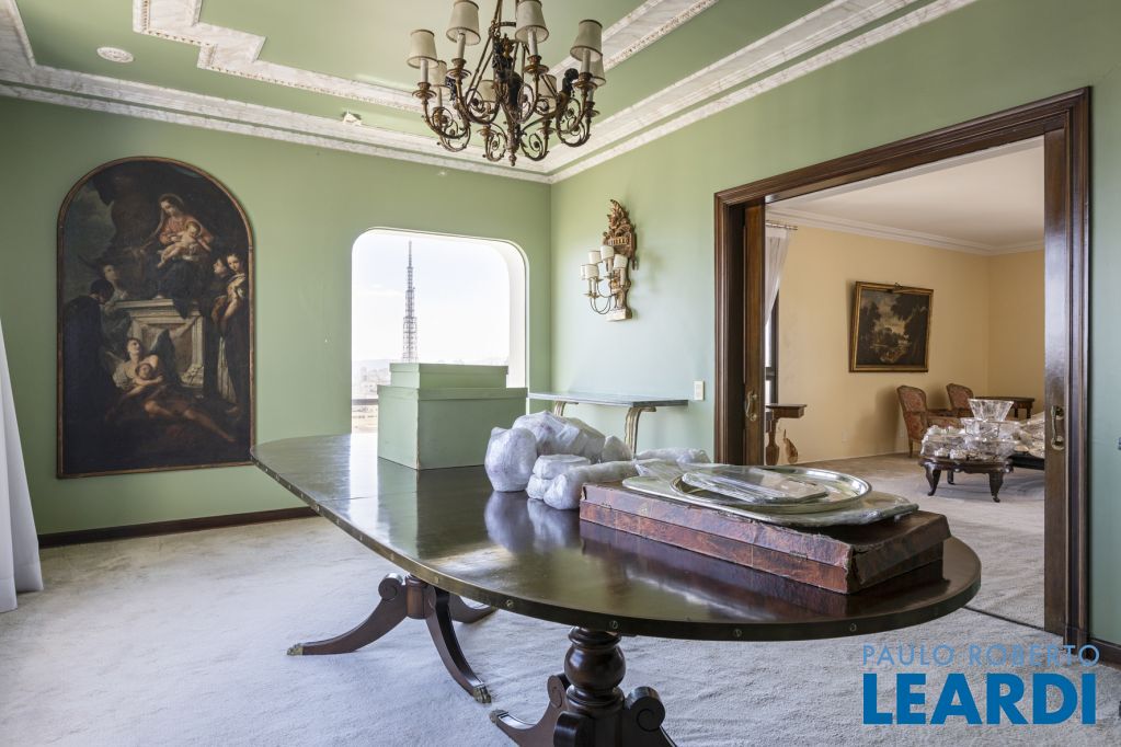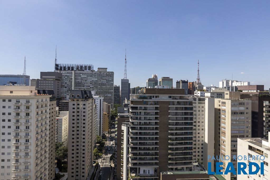 Cobertura única nos Jardins, daquelas que impressionam logo no primeiro olhar. O grande destaque é sua vista 360°, que traz uma sensação rara de espaço, luz e exclusividade. São três andares, todos atendidos por elevador privativo e escadas internas, com uma planta que combina imponência e potencial.