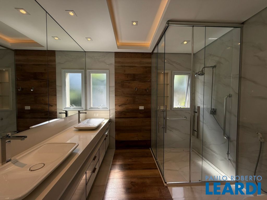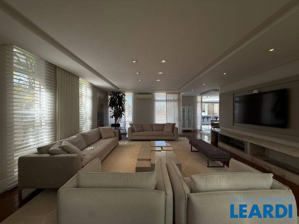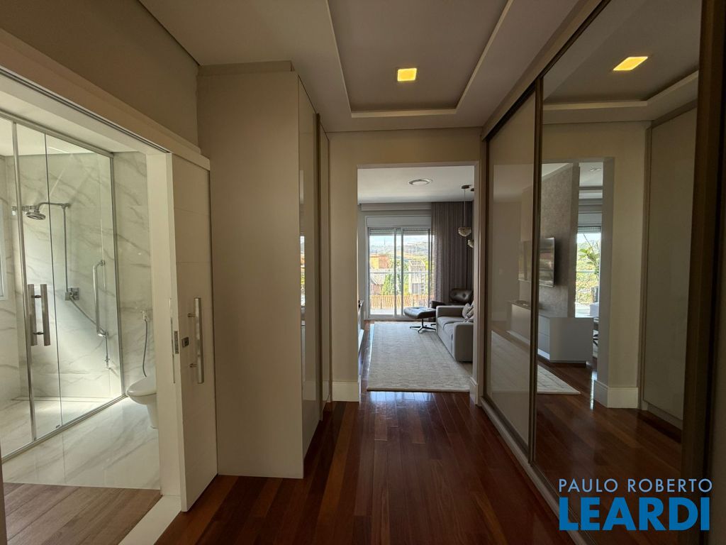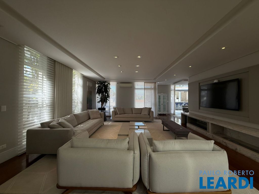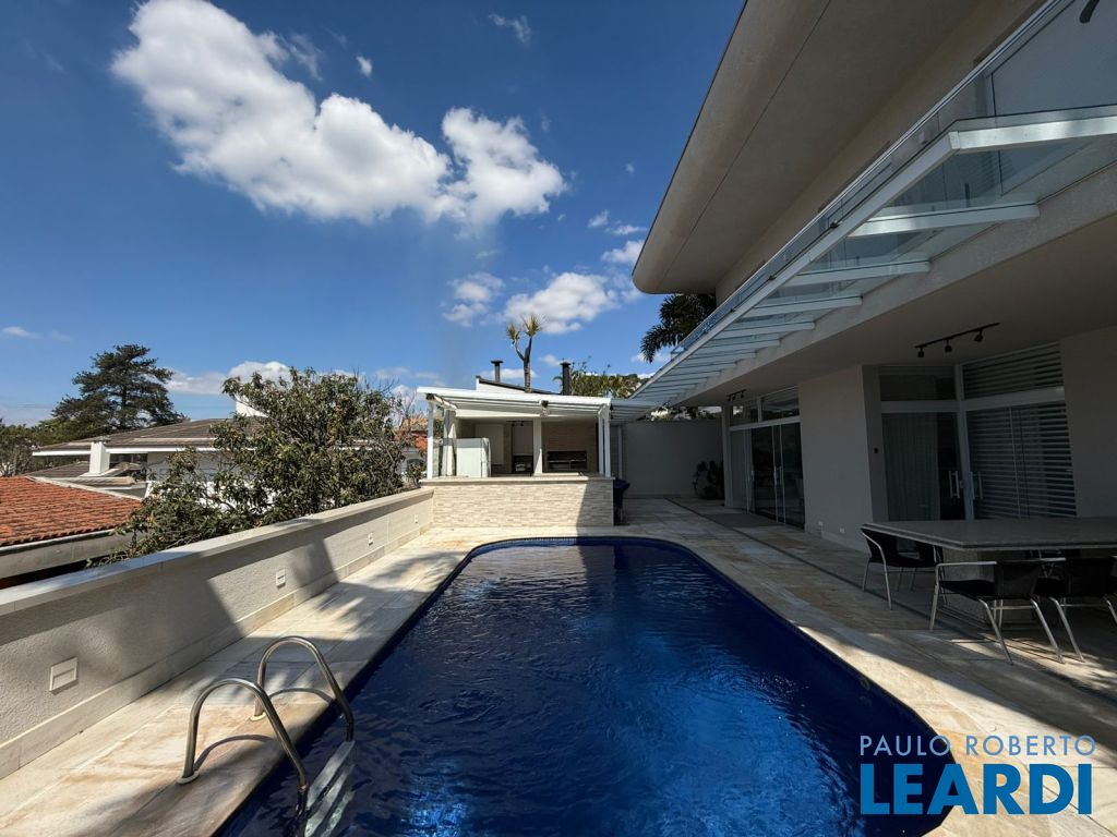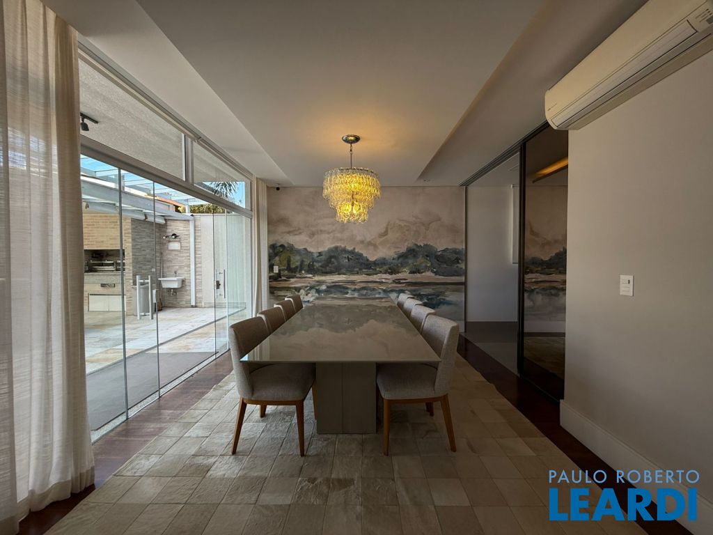 583.17 m² de terreno e 417.41 m² de área construída, jardim interno, com 3 amplas suítes, sendo que a suíte master com sala individual e varanda, escritório, lavabo, living com lareira, sala de jantar, cozinha totalmente equipada, piscina e área gourmet fantástica, integrada a área social. Ar condicionado em todos os ambientes, inclusive no quarto de funcionário.irrigação automática.0804