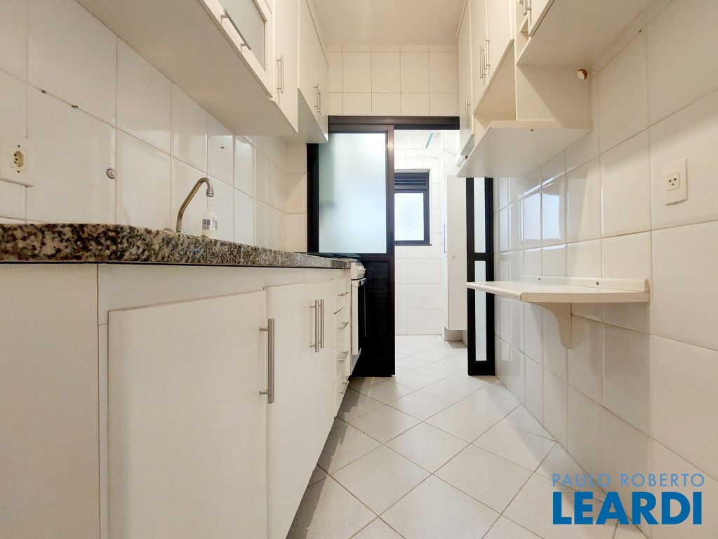 Cozinha com móveis sob medida, área de serviço ventilada