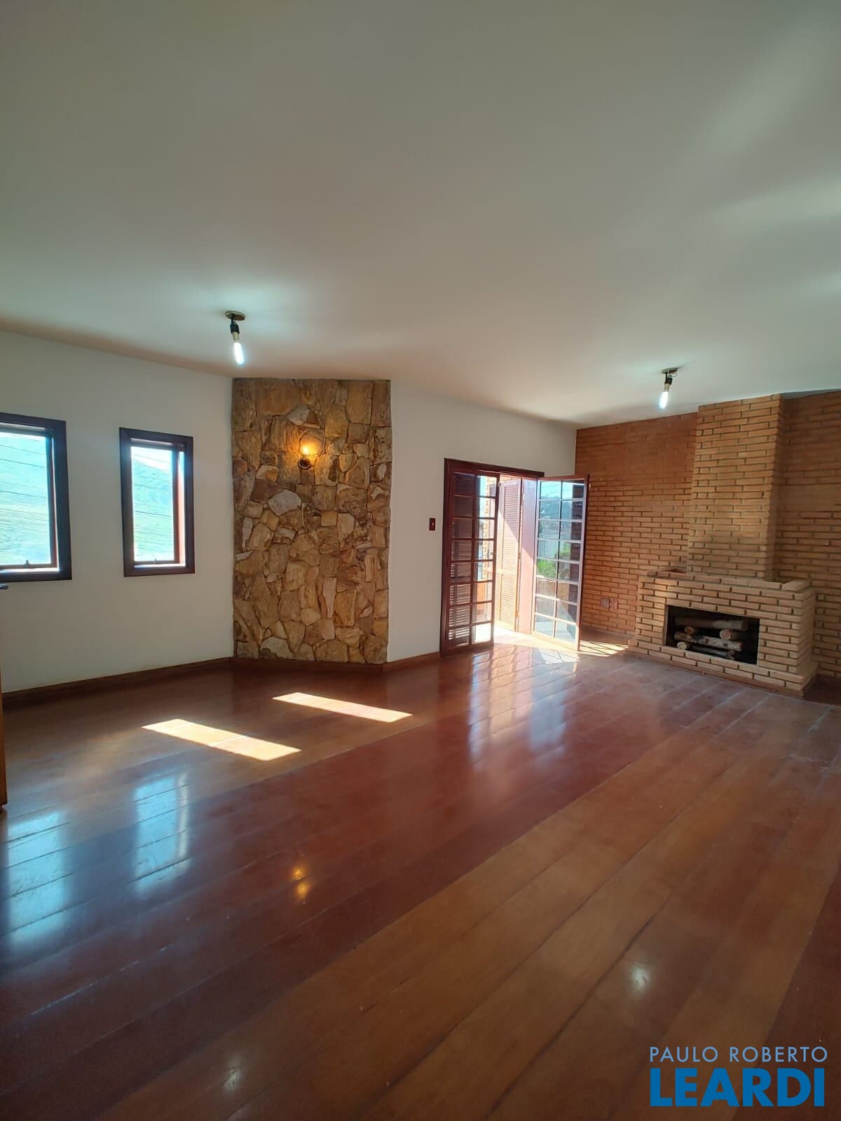 Sala de estar ampla com lareira e varanda perfeita para momentos aconchegantes