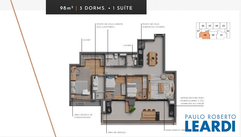 A planta inteligente proporciona excelente integração entre os ambientes, além de ótima iluminação natural e ventilação, tornando o dia a dia mais agradável. Os espaços são versáteis e permitem diferentes configurações de decoração.