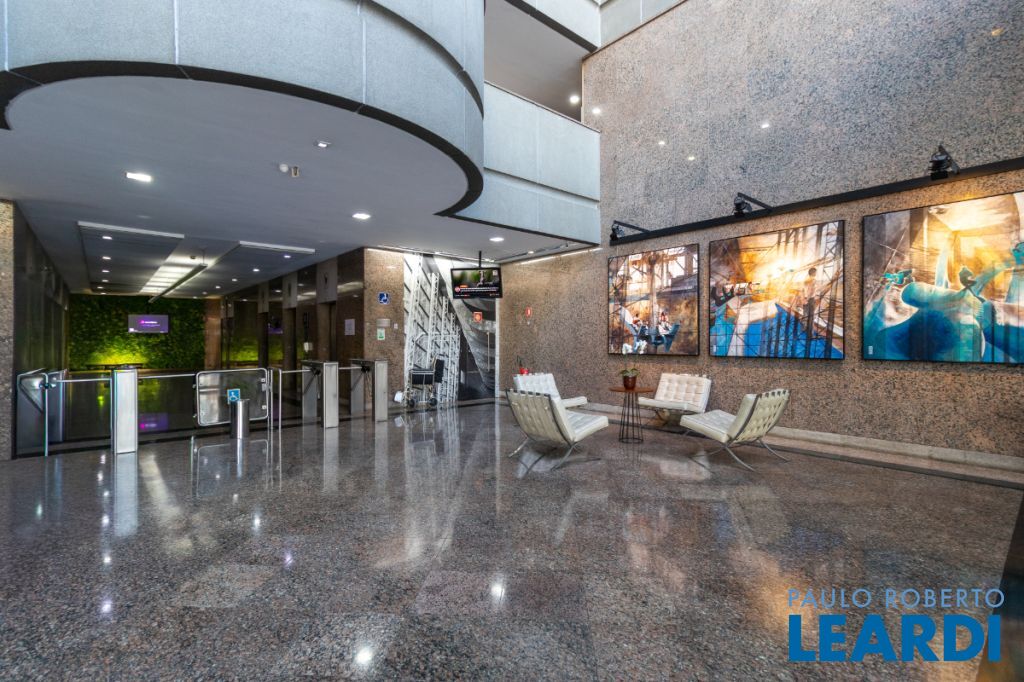 Amplo conjunto comercial com 526m² de área útil, localizado em andar alto de um dos condomínios corporativos mais tradicionais da região. O espaço conta com 4 banheiros, além de 18 vagas de garagem determinadas, garantindo total comodidade para equipe e clientes.