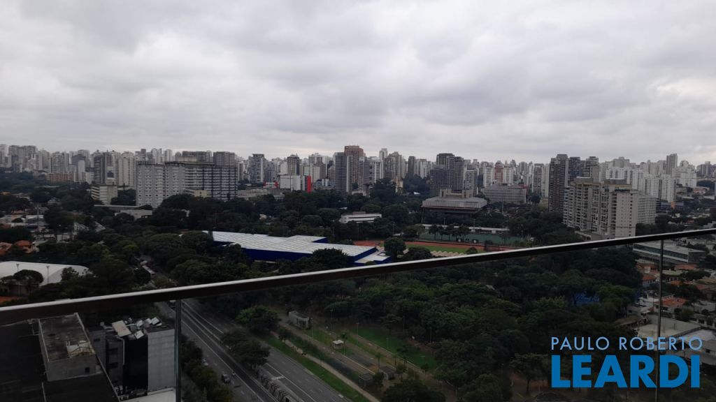 Sala ampla para 3 ambientes com varanda e linda vista do parque do ibirapuera e Skyline da Paulista .