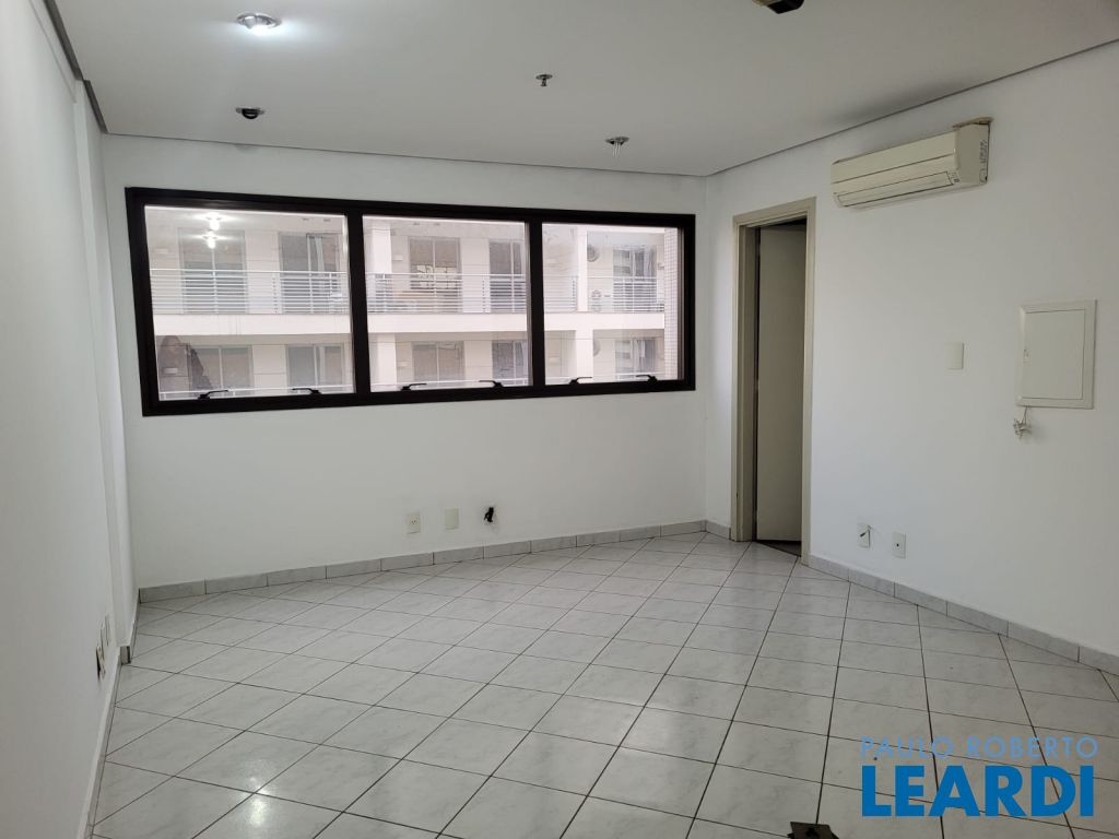 Sala comercial para locação em Moema, 30m² com 2 banheiros, ar condicionado, 1 vaga de garagem. Excelente localização, apenas 650 metros da estação de metrô da linha lilás. Prédio com segurança 24 horas. 0407