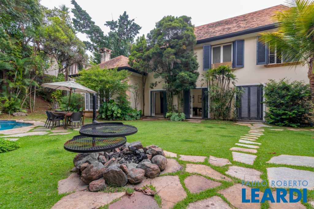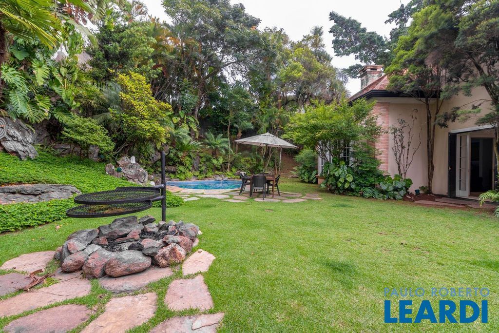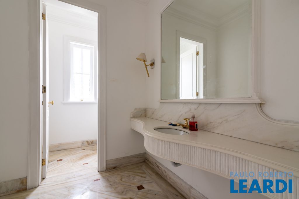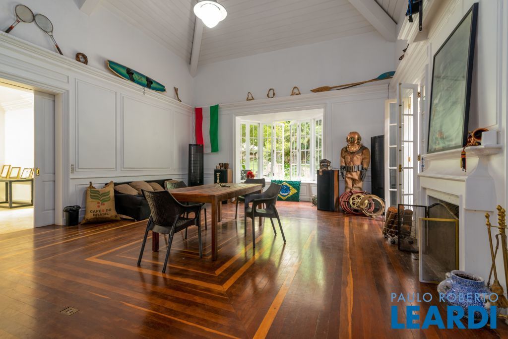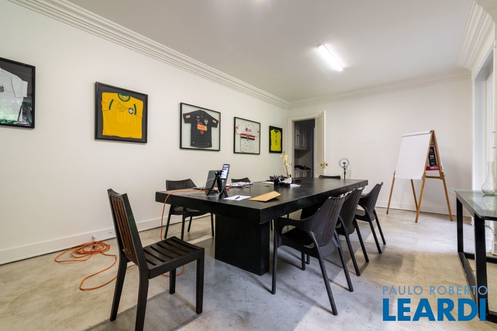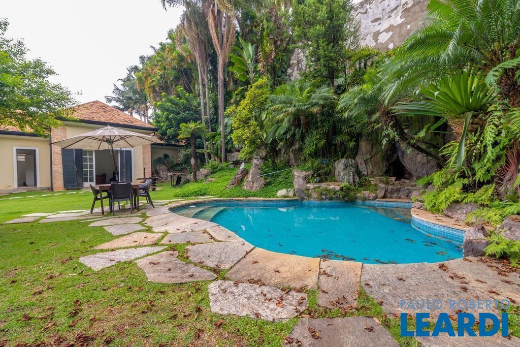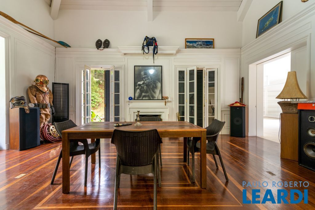 Ampla cozinha com armários embutidos, numa parte anexa a casa se encontra uma ampla área de serviço com armários, sala de estar com lareira, sala de almoço, sala de jantar, sala para reuniões e home office, todas as salas dão acesso ao quintal da casa, onde há uma piscina, além de oferecer um amplo ambiente verde com um jardim e uma churrasqueira. No segundo piso há uma sala de televisão com um lavabo à disposição, em seguida se tem acesso aos dormitórios. À poucos minutos do Parque Alfredo Volpi, Hospital São Luiz e do Jockey Club de São Paulo a propriedade se encontra em uma região nobre de São Paulo. Possui 06 vagas de garagem cobertas, 02 suítes com closet e 03 suítes normais, há um sotão onde pode ser transformado em um dormitório, escritório ou então outro ambiente.1111