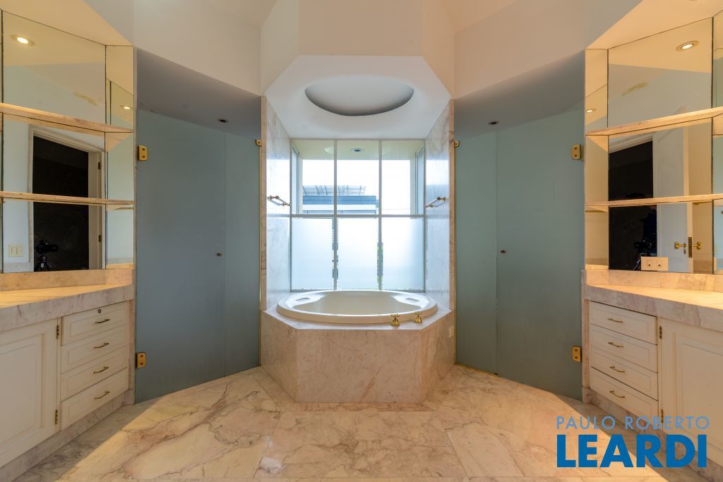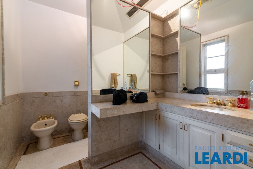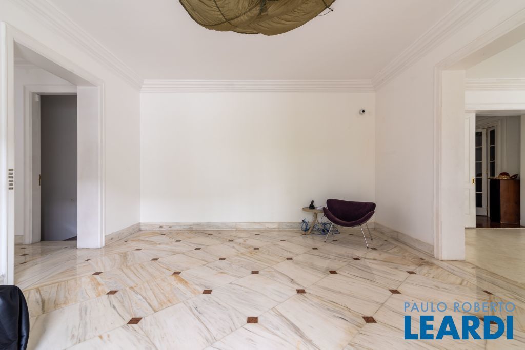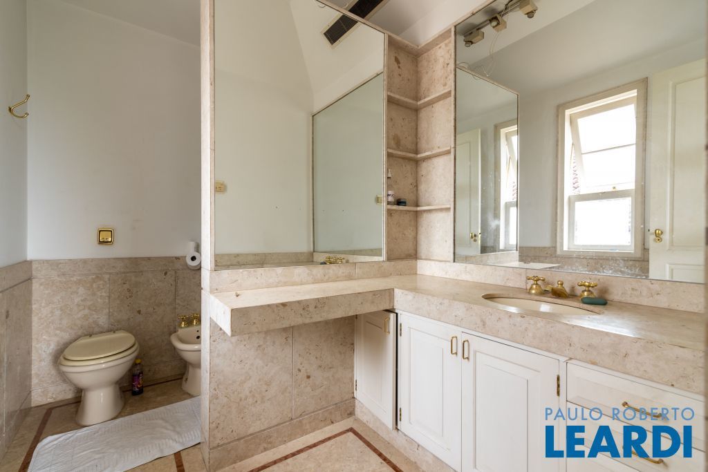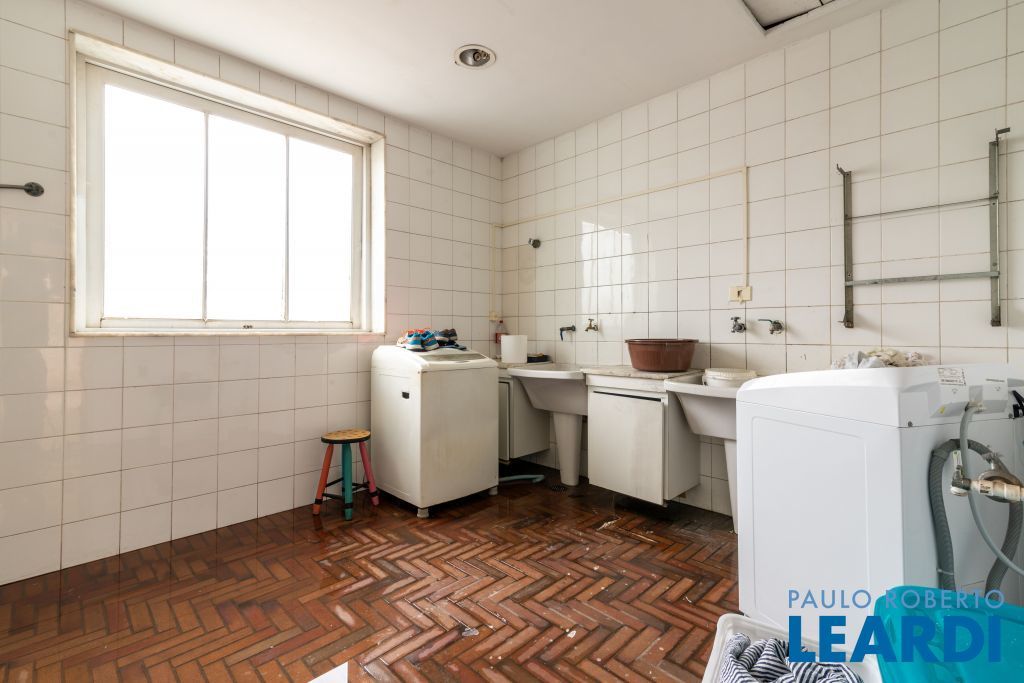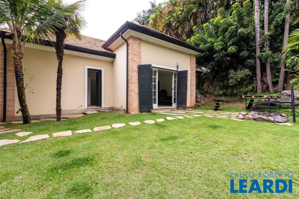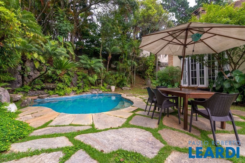 Ampla cozinha com armários embutidos, numa parte anexa a casa se encontra uma ampla área de serviço com armários, sala de estar com lareira, sala de almoço, sala de jantar, sala para reuniões e home office, todas as salas dão acesso ao quintal da casa, onde há uma piscina, além de oferecer um amplo ambiente verde com um jardim e uma churrasqueira. No segundo piso há uma sala de televisão com um lavabo à disposição, em seguida se tem acesso aos dormitórios. À poucos minutos do Parque Alfredo Volpi, Hospital São Luiz e do Jockey Club de São Paulo a propriedade se encontra em uma região nobre de São Paulo. Possui 06 vagas de garagem cobertas, 02 suítes com closet e 03 suítes normais, há um sotão onde pode ser transformado em um dormitório, escritório ou então outro ambiente.1111