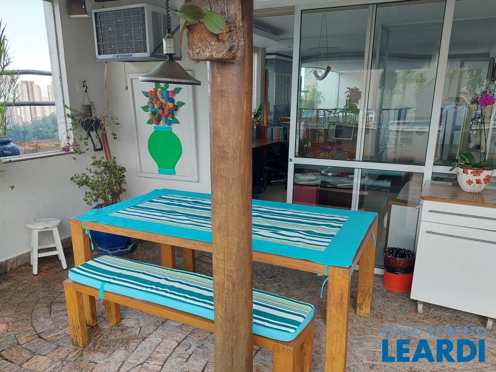 Belíssima cobertura em condomínio clube projetado por Ruy Ohtake, com vista excelente, reformada com materiais da melhor qualidade e com acabamento sofisticado. Lazer com piscina, churrasqueira e forno para pizza. Sala de jantar e living em mármore espanhol, sala de almoço, sala intima e home theater. Varanda e cortinas Hunter Douglas. Ampla suíte master com hidromassagem em mármore espanhol e closet. Armários embutidos de madeira maciça nas demais suítes. Banheiros com armários. Cozinha com piso em porcelanato e armários Kitchens. Deposito no subsolo.