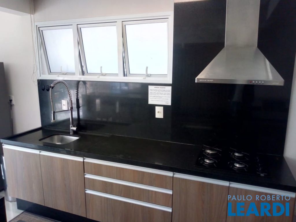 Cozinha completa com armários e eletrodomésticos;