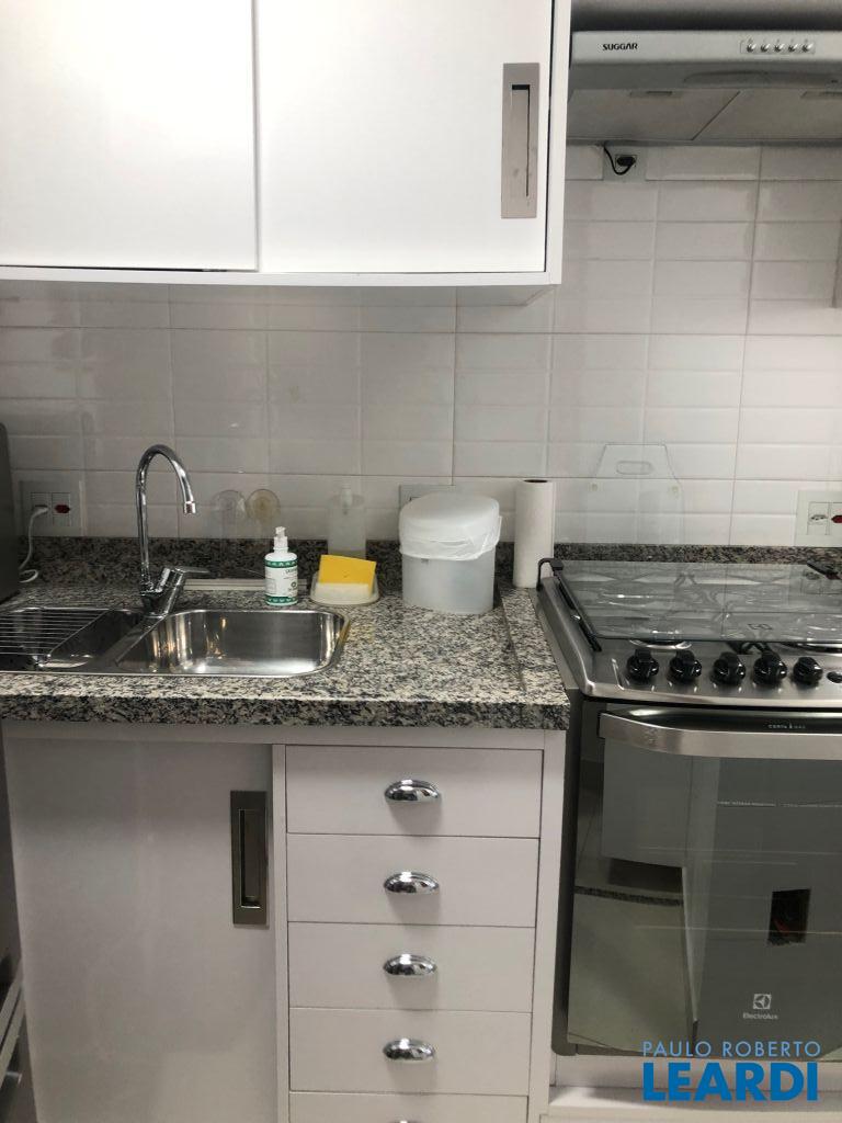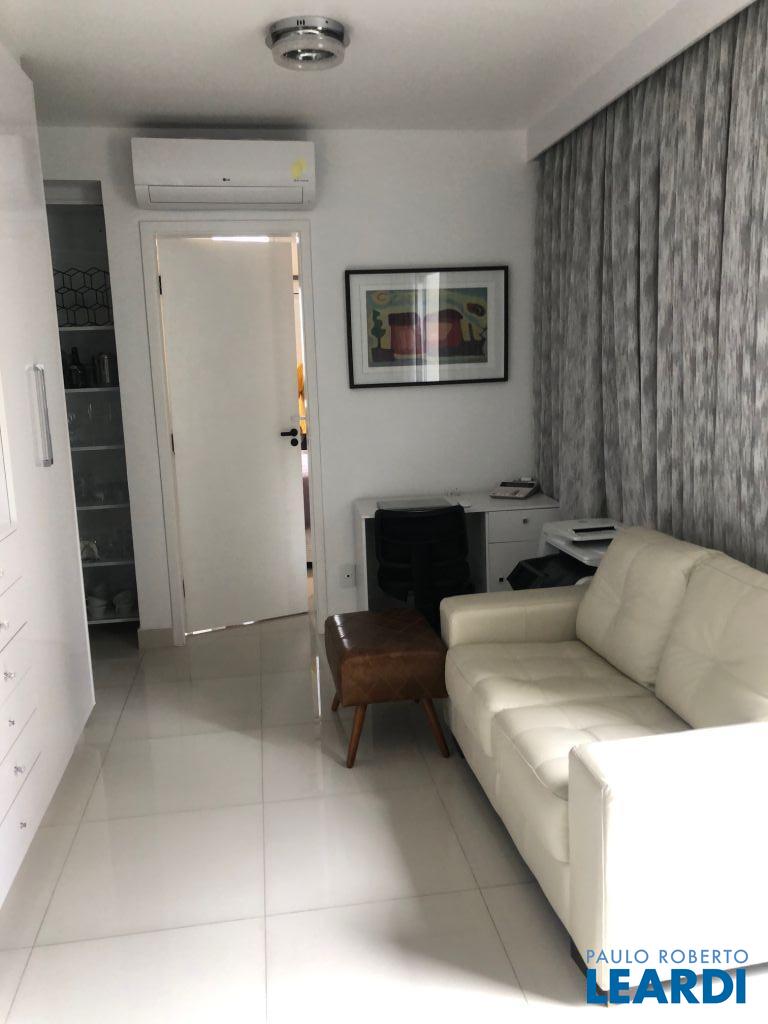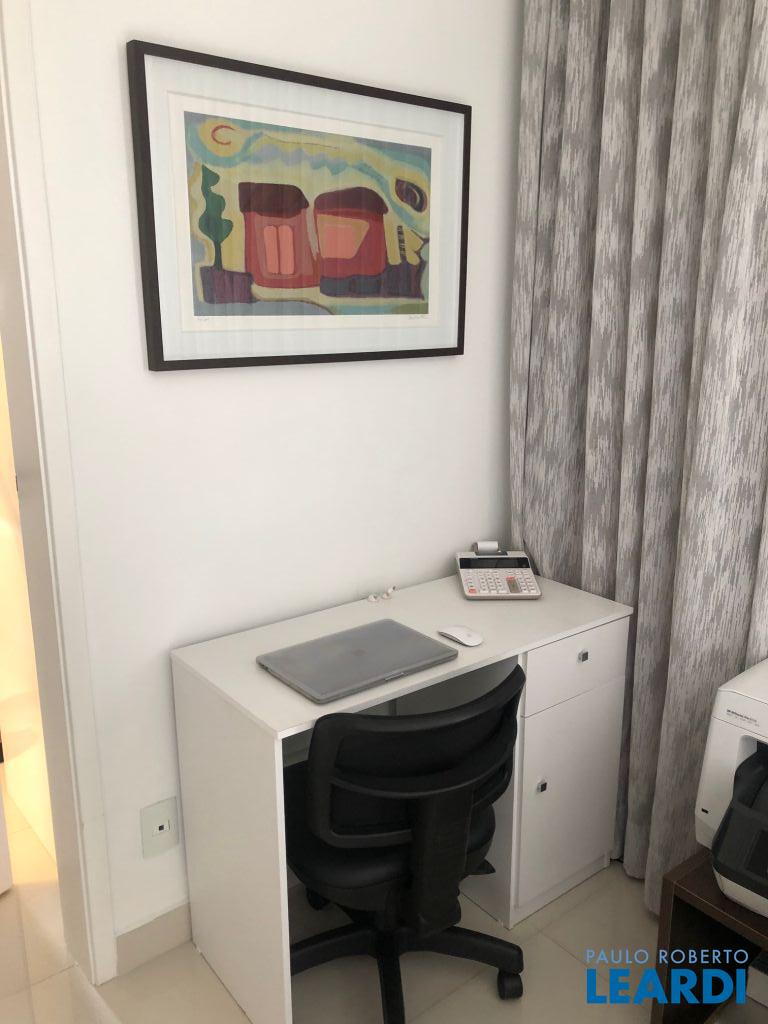 Apartamento com 1 dormitório, sala, cozinha, varanda, 1 vaga de garagem em sistema rodizio. - fechadura eletrônica instalada, ar condicionado na sala e dreno para futura instalação no quarto, varanda, repleto de armários na sala, cozinha, quarto e banheiro, totalmente decorado, apto lateral sem barulho, cuba dupla na cozinha e varal de parede na pequena lavanderia, cortinas na sala. Ficam no apto: geladeira frost free, fogão embutido , máquina lavar roupa, depurador, cama queen box com baú, mesa redonda, 4 cadeiras, sofá de couro e escrivaninha, cortinas na sala.1711